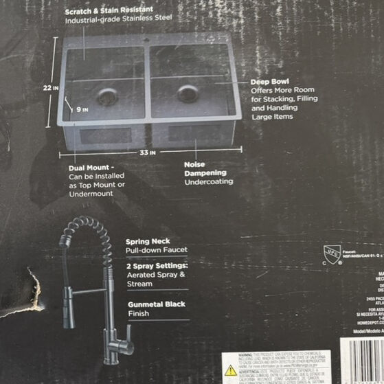 VenmoNew in box. Never opened. Black stainless steel. 22x33 inches. 9 inches deep. Paid $407 with sales tax.