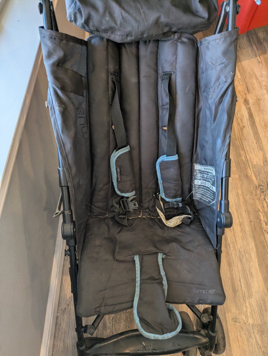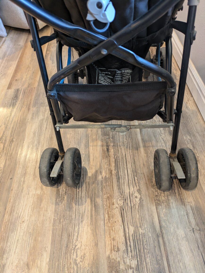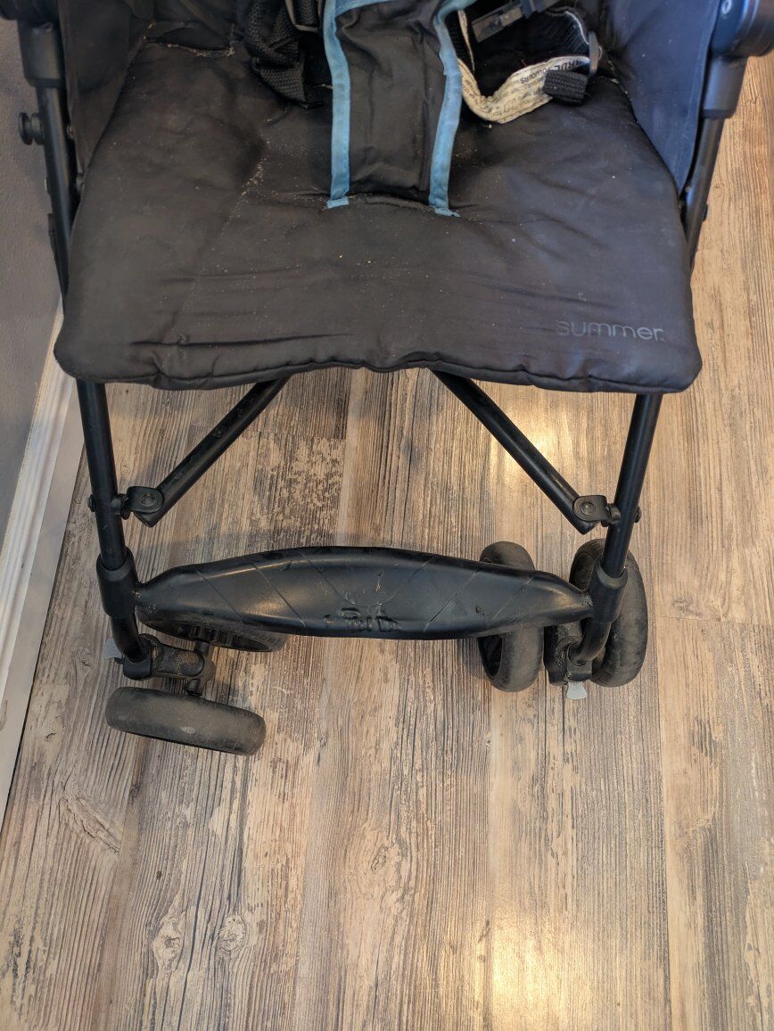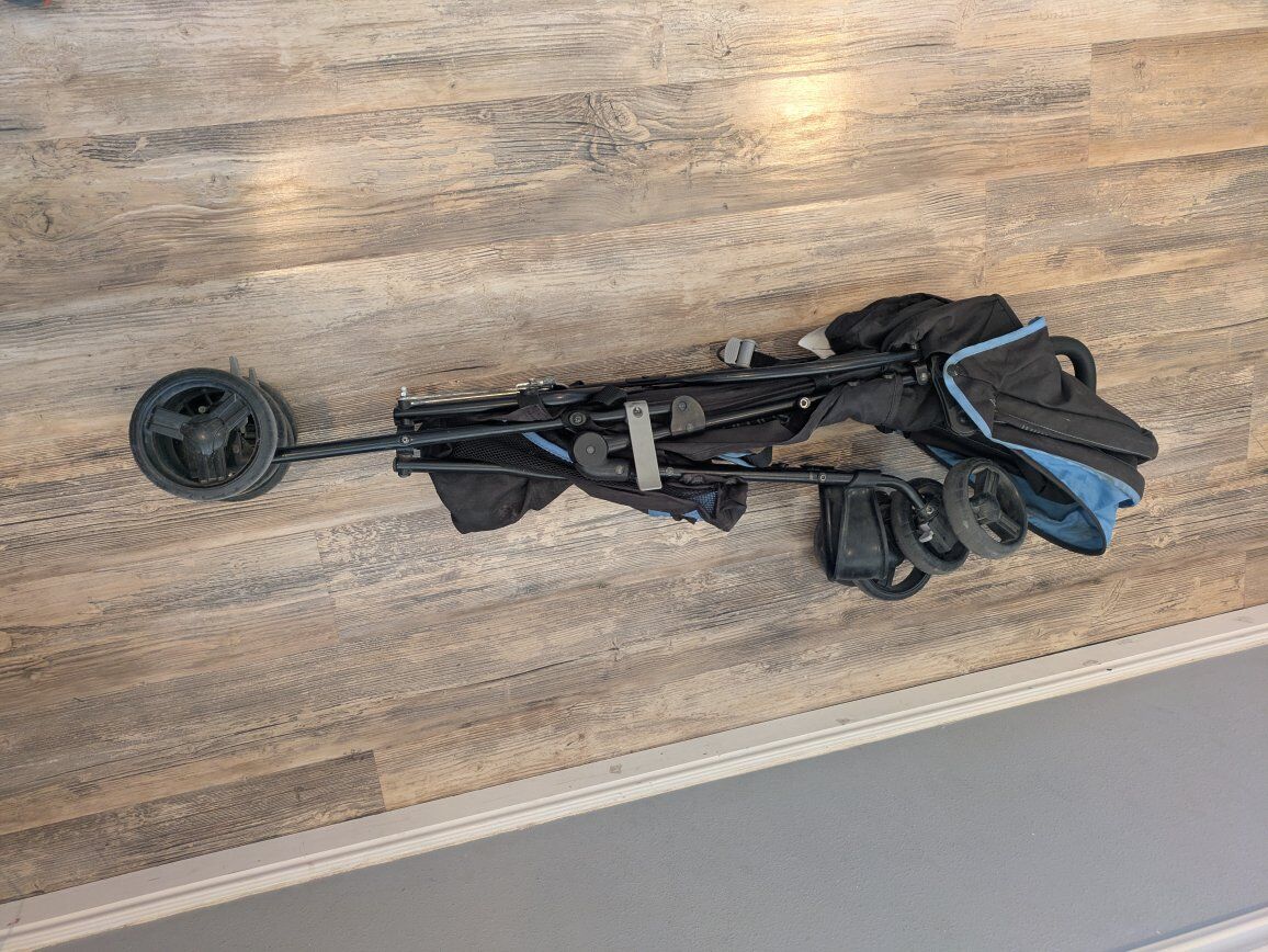 Great little stroller for quick trips, travel, or keeping in the trunk. Everything works perfectly—folds smoothly, wheels roll great, all clips/zippers function. It’s been used and could use a wipe‑down, but it’s fully functional and super lightweight.