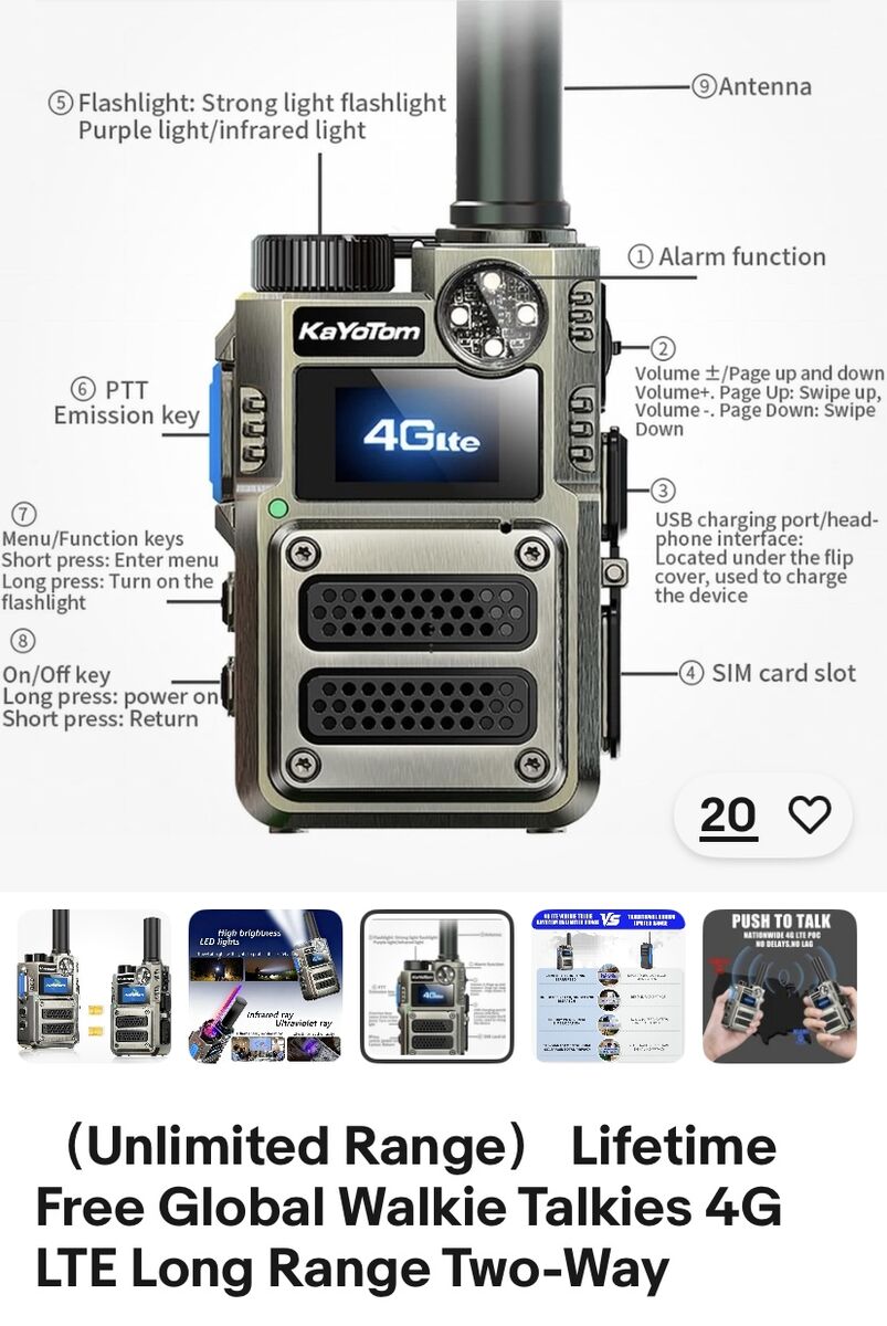 Global Walkie TalkieCellular POC ptt-walkie talkies technology for seamless unlimited range coverage.The 4g lte SIM card is pre-inserted for you.Just unbox,power on, and enjoy crystal clear instant rapid communication across California to New York,cities, states,and countries.FCC ID: 2BK59-M12