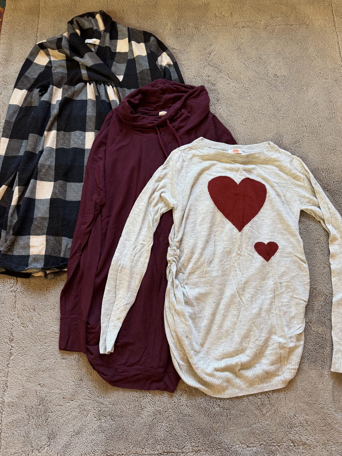 3 sweaters, including an adorable heart sweater perfect for Valentine's Day!