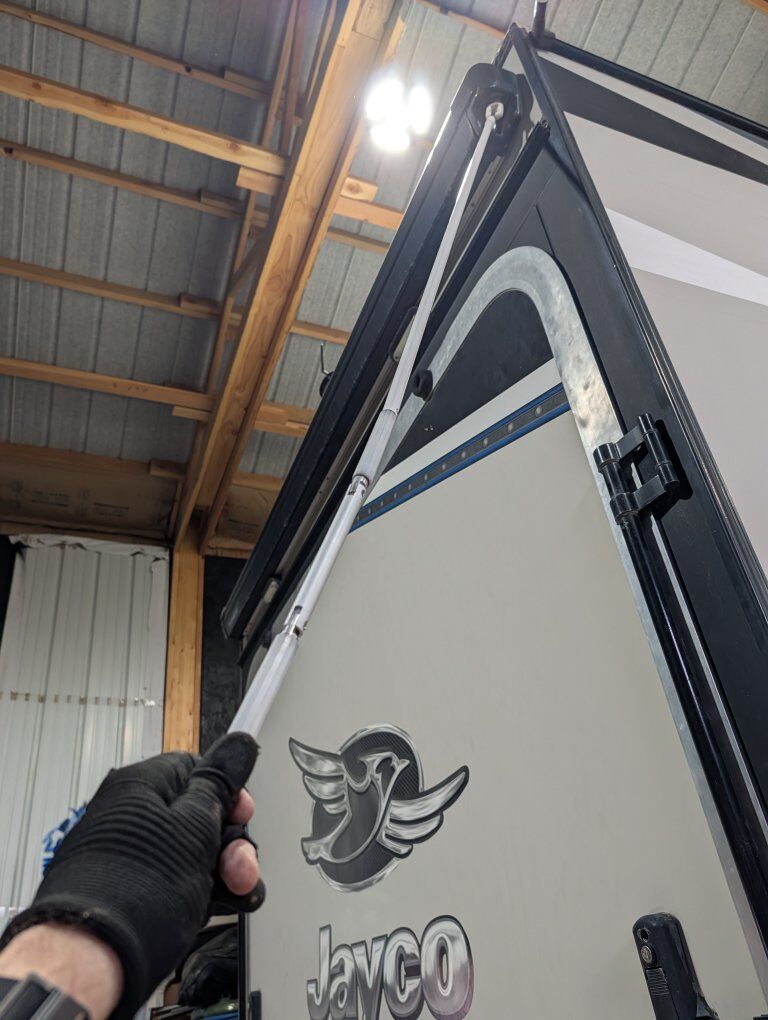 GooglePayThis is a brand new in box rear trailer awning. I know that this particular model fits a 2019 Jayco T32H. but ultimately, as long as you have the surface area to accommodate the length, I'd imagine you can put this on any trailer if you want to have a back awning over your toy, hauler ramp etc. It measures 100 in wide. so, as long as you have at least that spacing on your back side of the trailer, it should be able to work for you. It's a manual crank style and it does not include the crank arm. You would have to purchase that separately unless you already have one. when fully opened up, it sticks out from the trailer about 6 ft. dishoning retails new for about $1,300. Listing price is firm. I live in West Haven. No trades.