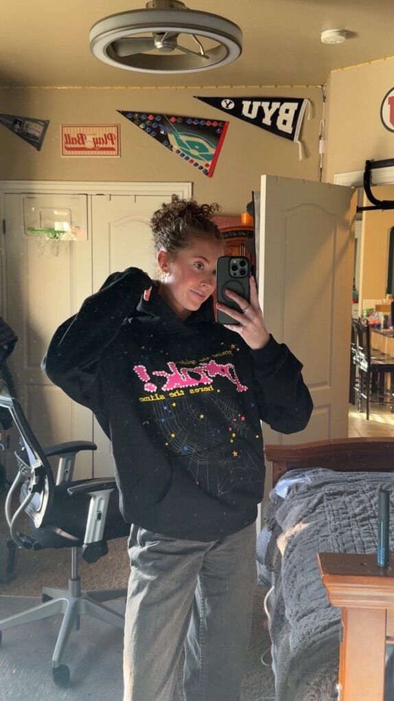 PayPalBlack and pink small spider hoodie. High-quality alternative DM