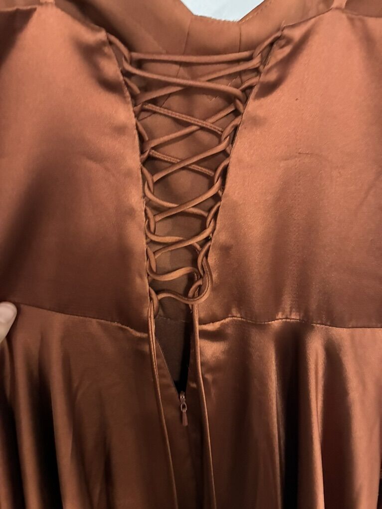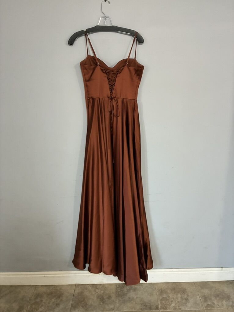 VenmoThis dress is lightly used, size 4 and HAS POCKETS. It’s also tall girl friendly! I’m 5’9” and the dress reaches the floor on me.