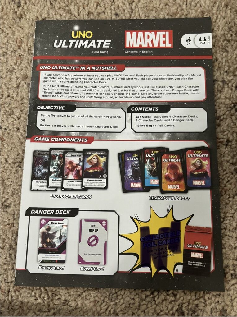 UNO Ultimate Marvel Card Game with 4 Character Decks, Special Rules Super Heroes No advance payment Payment and pick up are at the same time.