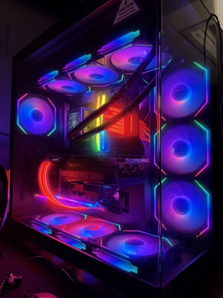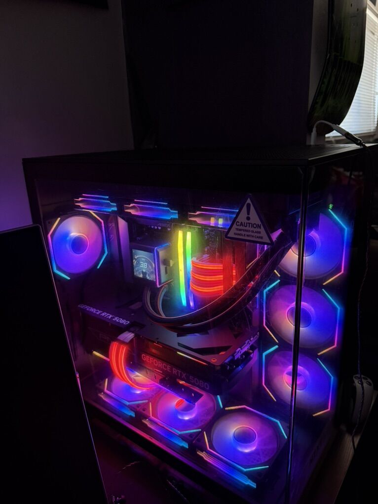 Ram: Corsair Vengeance 32 gb Ram DDR5 6400 MB: GIGABYTE B650 AORUS Elite AX CPU: Ryzen 7 9800X3D CPU Case: Nzxt H9 FlowPc Case CPU Cooler: Lian Li GA II LCD AIO Cooler PSU: Lian Li Edge 1000 W SSD: Samsung 990 Pro SSD 2 tb GPU: PNY 5080 GPU with RGB anti sag bracket Fans: Lian Li Fans X10 Cables: Lian Li Strimmer X2