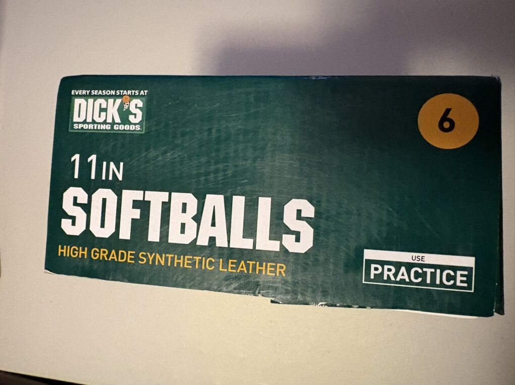 VenmoGet ready for a new season of training and practice with the DICK’S Sporting Goods 11’’ Softballs. These 11’’ balls boast a solid cork core and rolled seam stitching for unrivaled response in the air and on the dirt. Constructed with a synthetic cover, each ball in this package of 6 has increased durability for long-lasting performance to take you into next season. FEATURES:
