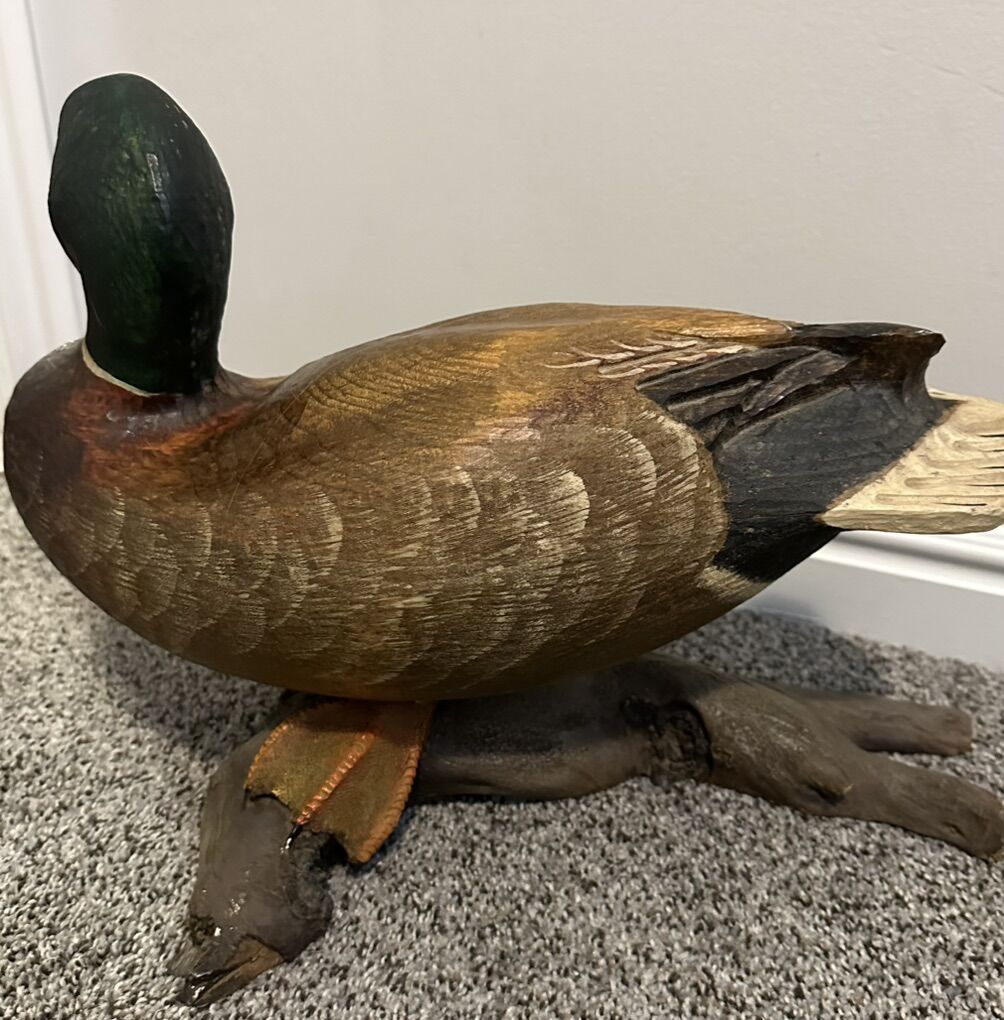 PayPalRare and hard to find. Large Mallard duck on detailed drift wood log. Big Sky Carvers Master Edition and numbered 323/1250. Approximate measurements: 17L x 11H x 9W Glass eyes. Amazing display piece. Check out my other listings. I have more decoys available.