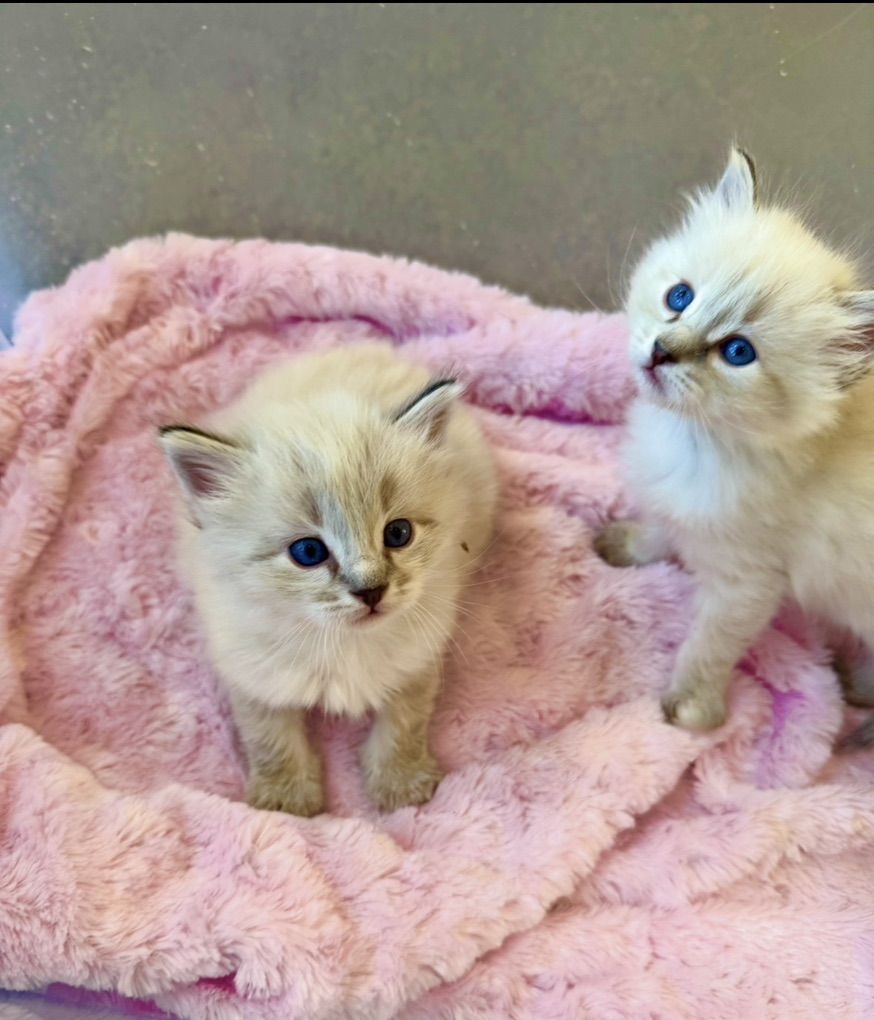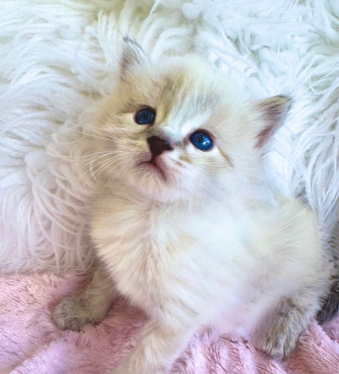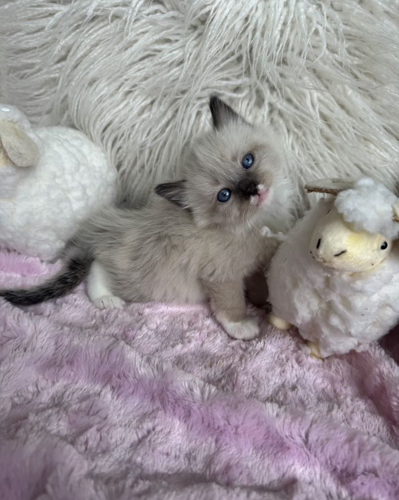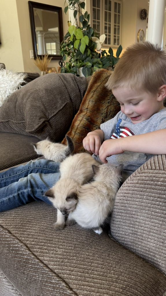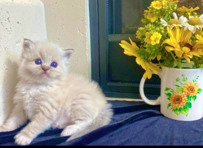 *********STUNNING kittens w/ super fluffy coats and GORGEOUS BRIGHT BLUE EYES & famous loyal PUPPY DOG FLOP on your lap RAGDOLL temperament ours are famous for.**************If not a good time, you can hope on our wait list with just a $395 non-refundale deposit. Goes toward the price of your kitten--save your position to pick as well. We never take more deposits than the number of kittens mom had in her prior litter.