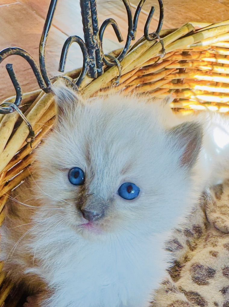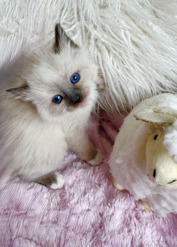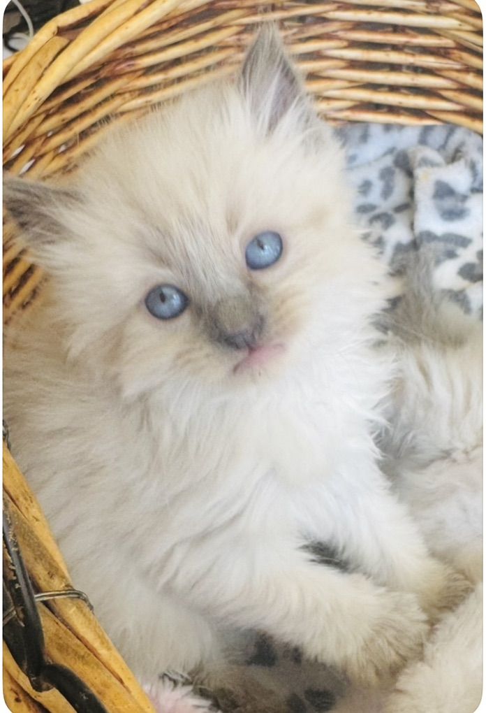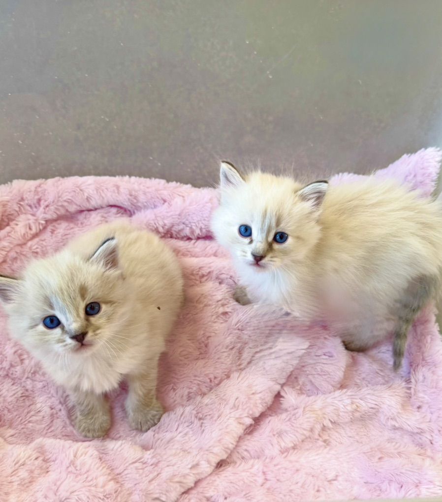 *********STUNNING kittens w/ super fluffy coats and GORGEOUS BRIGHT BLUE EYES & famous loyal PUPPY DOG FLOP on your lap RAGDOLL temperament ours are famous for.**************If not a good time, you can hope on our wait list with just a $395 non-refundale deposit. Goes toward the price of your kitten--save your position to pick as well. We never take more deposits than the number of kittens mom had in her prior litter.