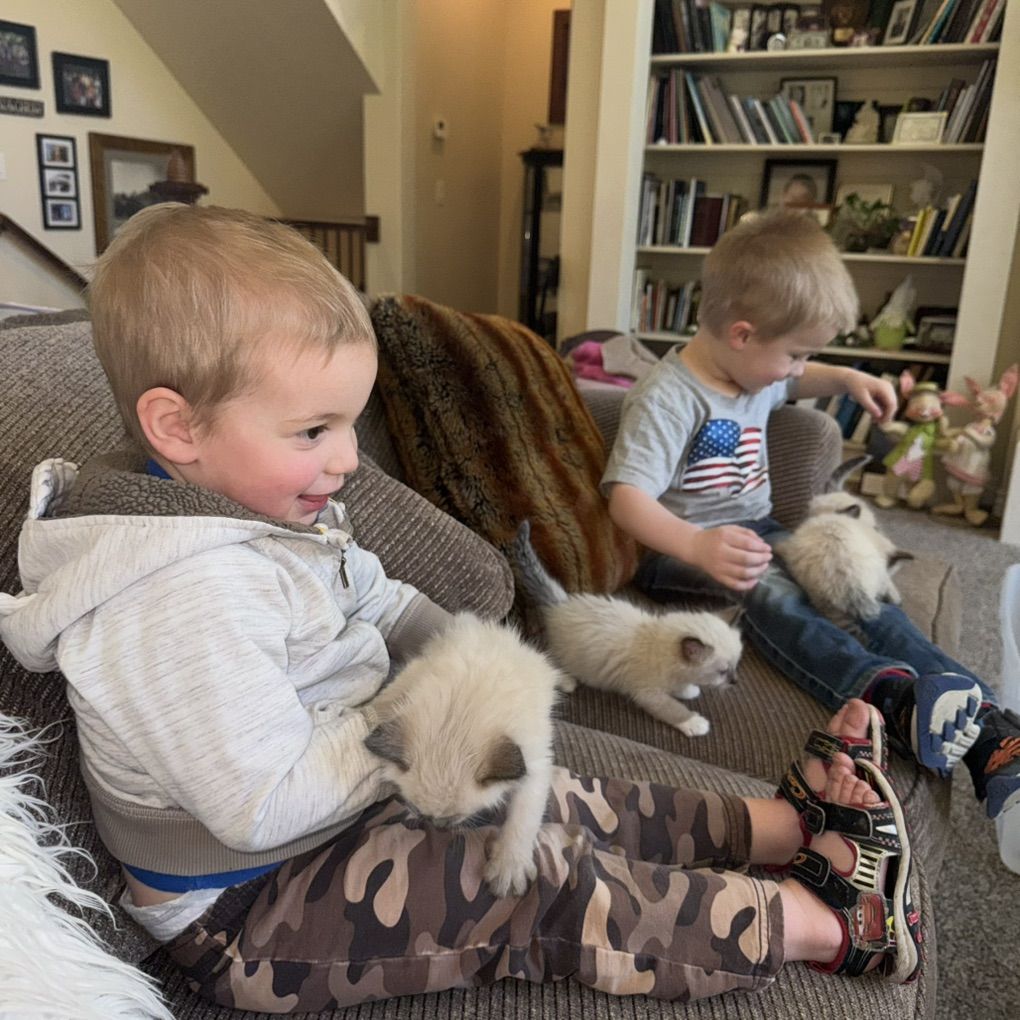 Our kittens make excellent emotional support animals and are wonderful with children—have used them in my counseling practice (as a licenced family counselor) as they reduce anxiety and help with many diagnoses. Raised in our home with kids and dogs, our kittens are well-socializedt--they are 100% litter trained, and eating dry food when they go to their fur-ever homes.