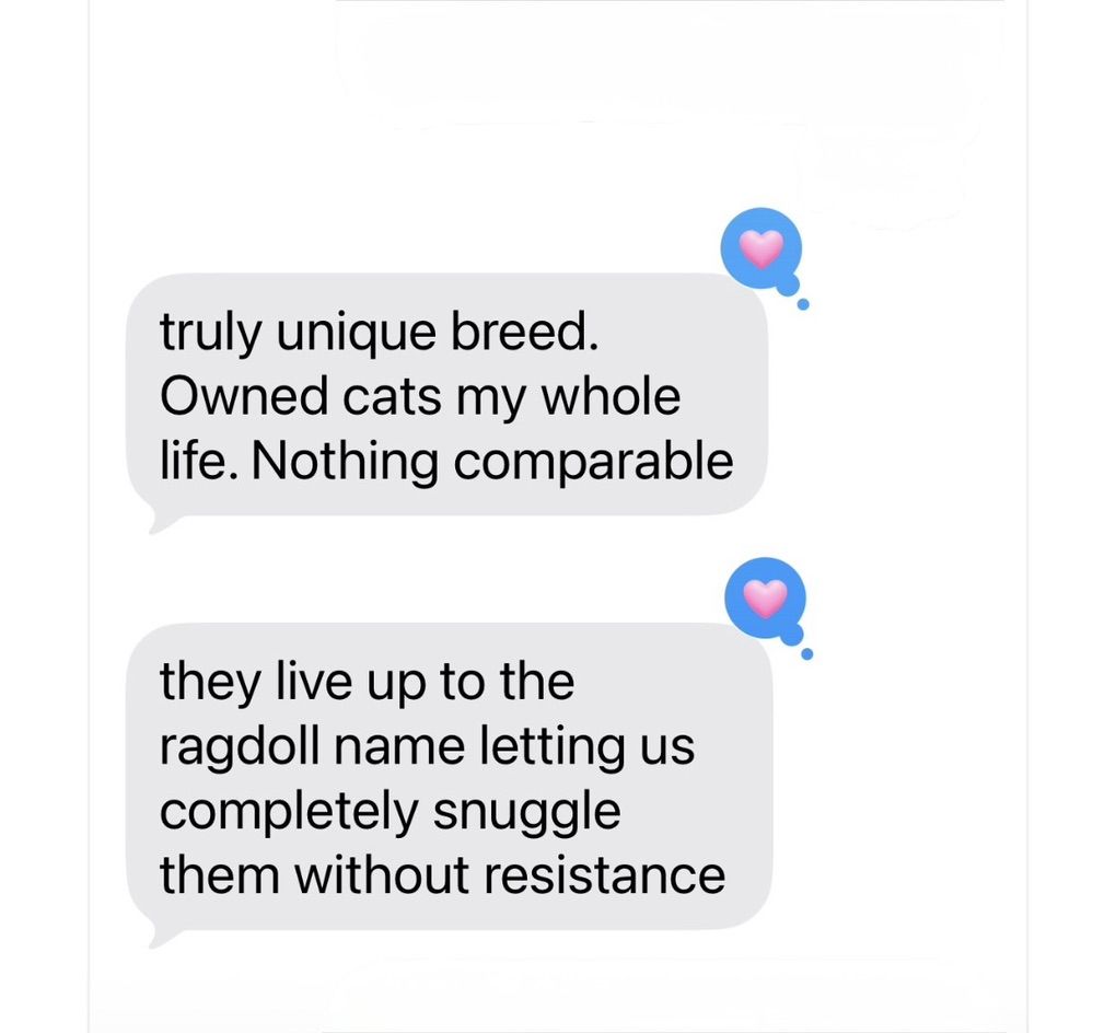 **Our kittens are EXTREMELY AFFECTIONATE, healthy, playful, and intelligent—**they talk, fetch, leash-train, and even do tricks (we can send videos!) They are incredibly loyal and cuddly, following you everywhere like little dogs.