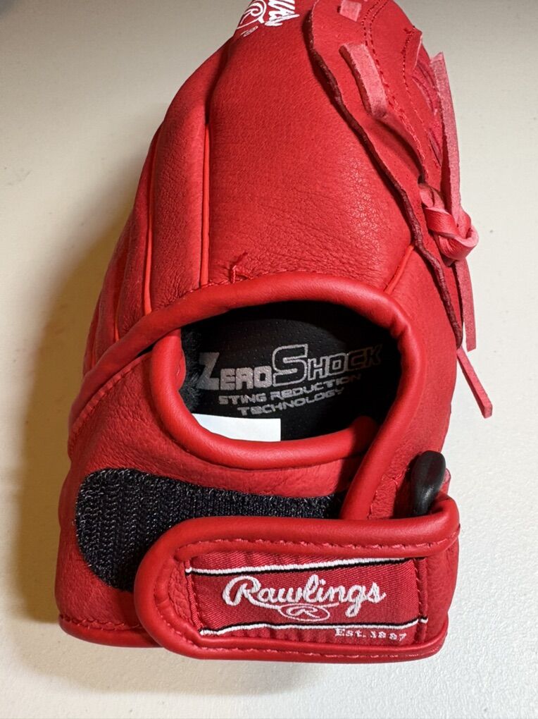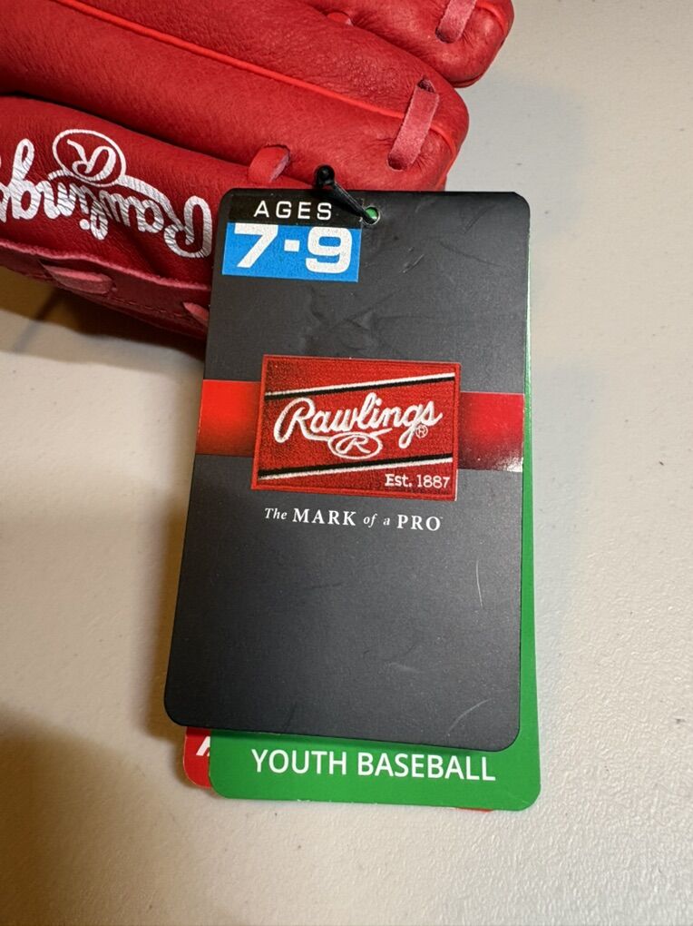 VenmoFEATURES: Soft pigskin leather shell offers premium durability Cushioned Brushed Nylon finger back lining for a comfortable feel Sure Catch heel design for easy close Internal palm pad absorbs impact for consistent cushioning Conventional open back ADDITIONAL DETAILS: Brand : Rawlings 7-9 ages