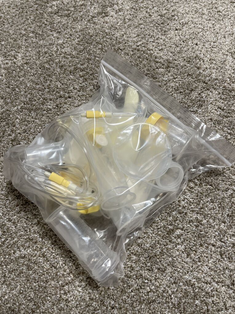 VenmoIncludes everything: Unopened milk bags Unused breast pads Cotton breast pad Two types of breast pumps Unused Hakkaa Breastfeeding starter kits