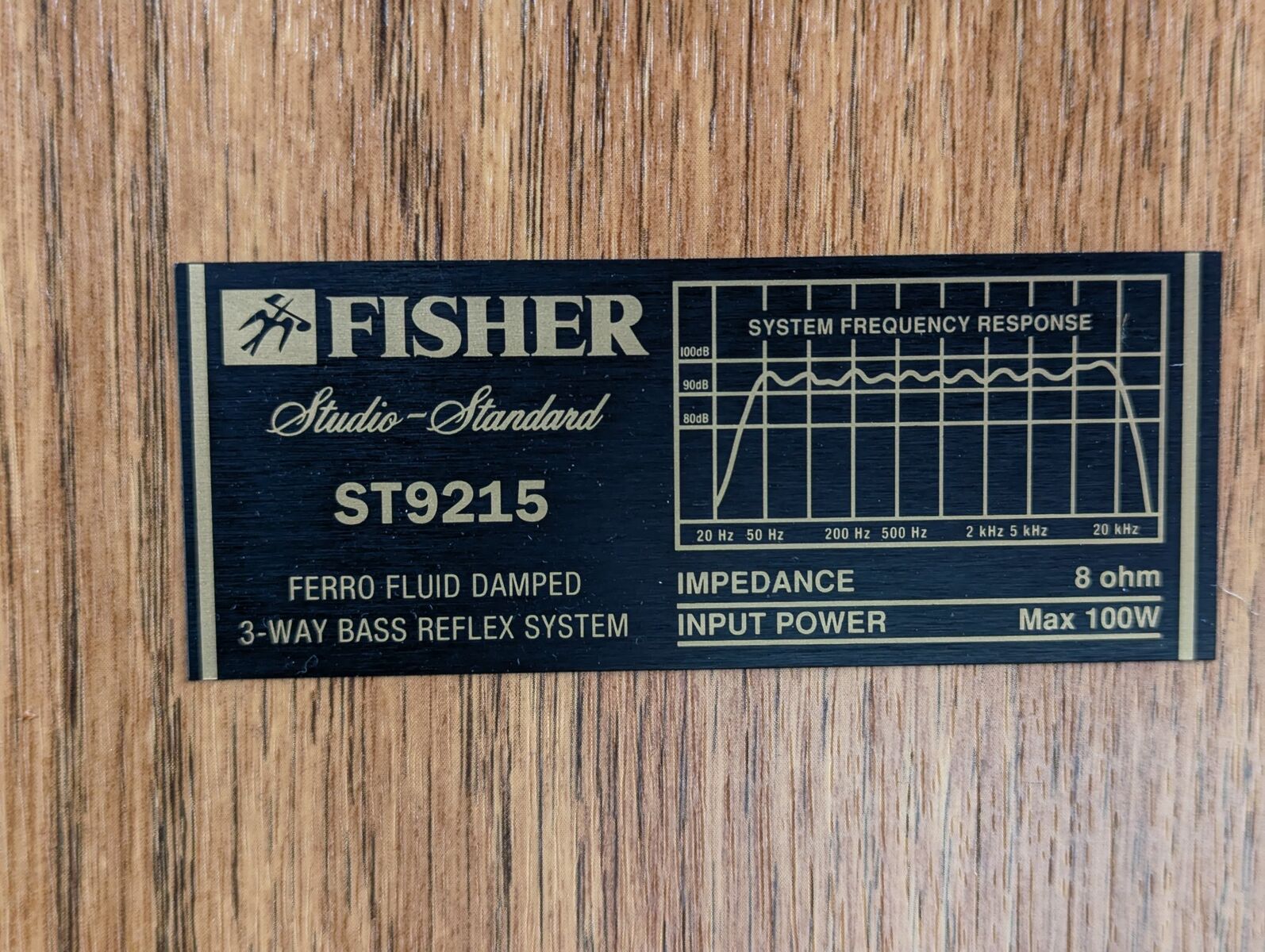 GooglePayFisher Studio Standard ST9215 speakers featuring a Ferro fluid damped 3-way base reflex system. These vintage speakers have an impedance of 8 ohms and a maximum input power of 100W. The speakers were assembled in the USA and have a stain-resistant laminated particle board enclosure. The approximate manufactured date is 1993.