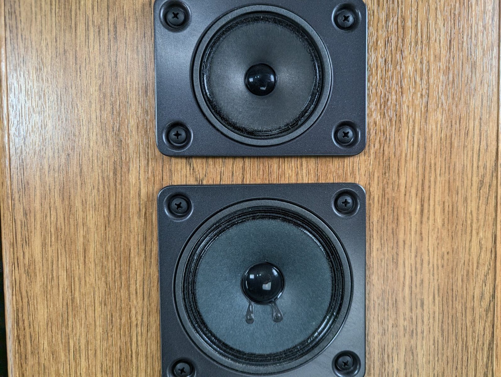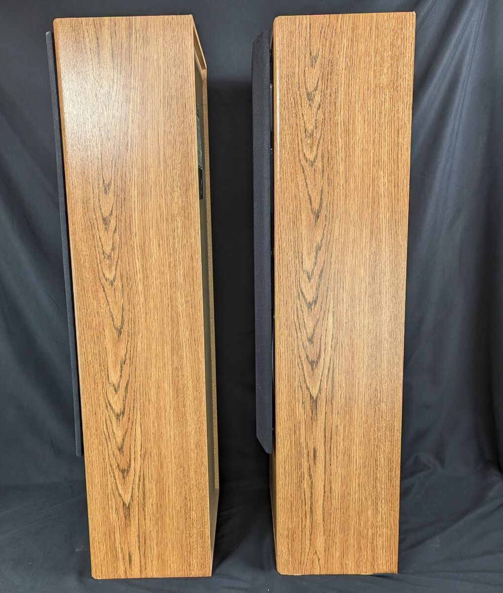 The speakers are in excellent condition with minor scuffs, scrapes, and a small amount of dust from storage. The exterior finishes show no notable defects or damage. The speakers have been tested and sound amazing.