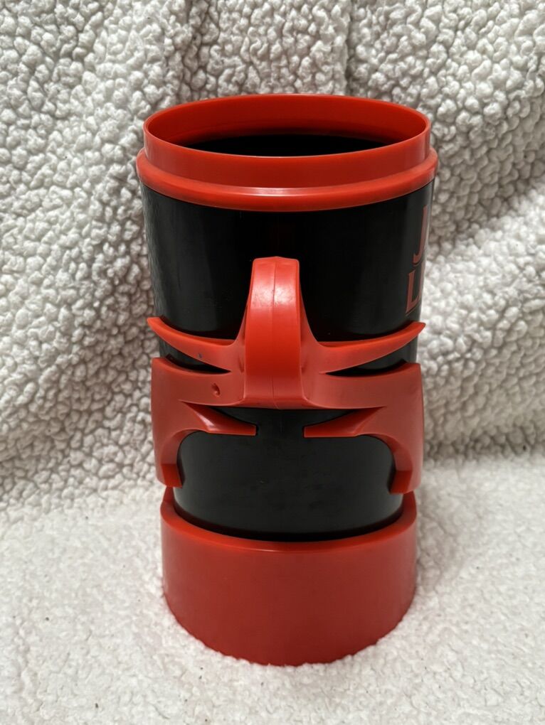 Jack Links Beef Jerky Counter Display Container Red Black Bull Horns Promotional cup cozy. Red plastic with black insert and red logo. Fits standard cups, provides insulation, and has handy side grips. Perfect for collectors of branded merchandise or everyday use. Excellent conditions Great addition to Jack Link’s or promotional item collections. 11.25”H x 9.75”L No advance payment Payment and pick up are at the same time