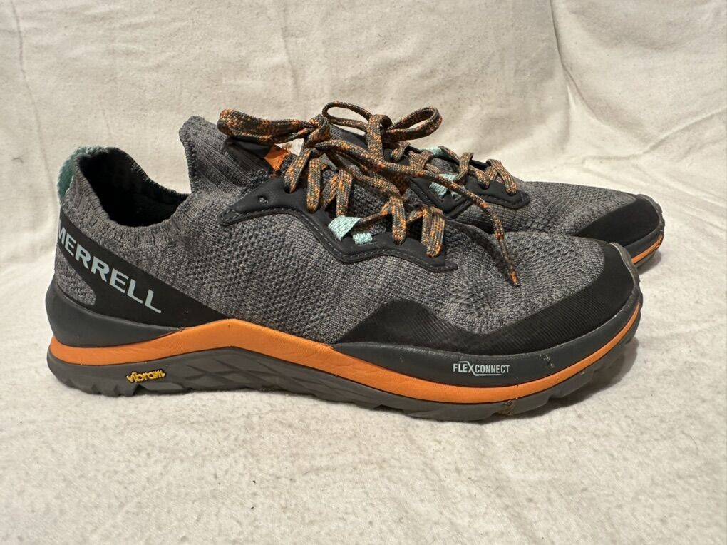 Merrell Mag 9 women’s size 8 J85862 gray with orange trim trail shoes. These are in excellent condition, see photos for details. I take cash or Venmo, but cash is preferred. Text is best. 801-201-4446. Check out my other ads for additional sizes and styles.