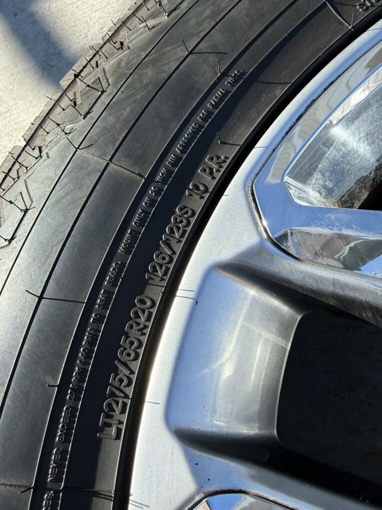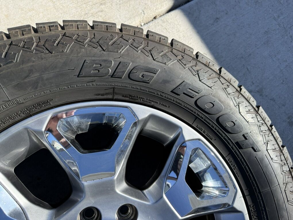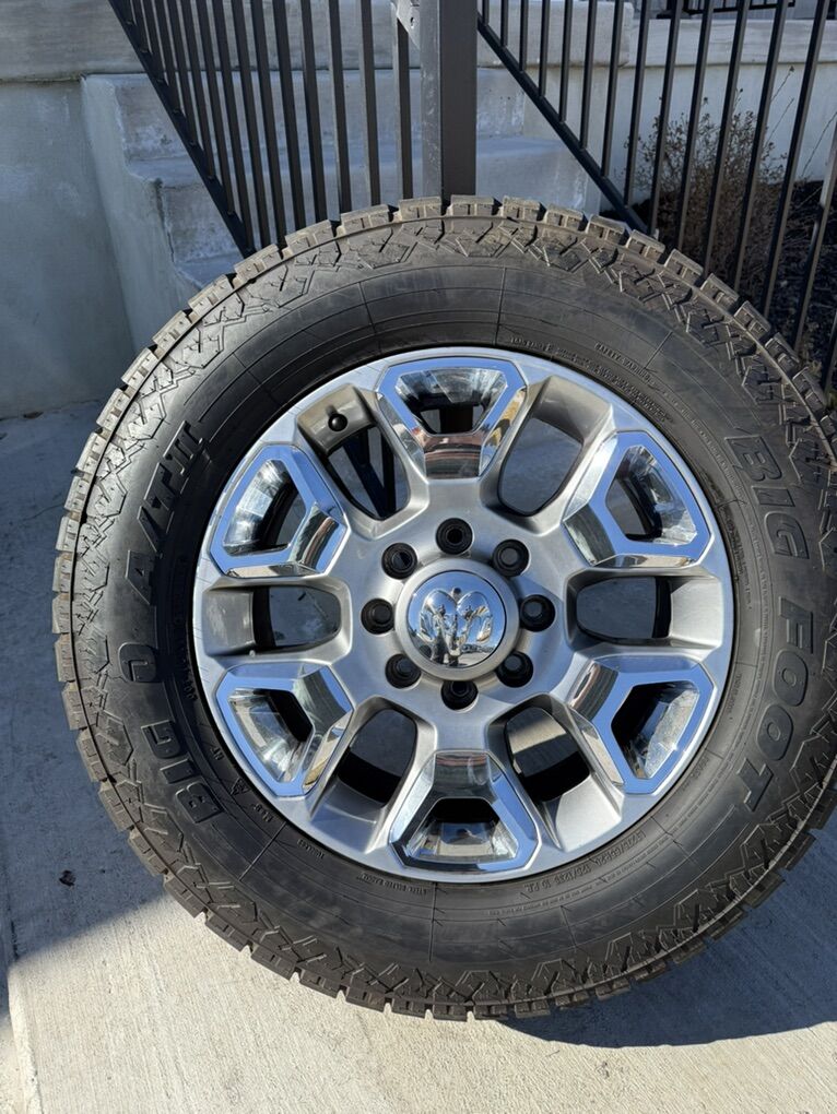 ApplePaySet of 4-Dodge Ram 3500 Limited Rims and Tires 275/65R20 Big O Big Foot AT Load E like new in excellent condition asking $2800 obo Tires are new only 2000 miles Rims are in excellent condition no curb rash or scratches I can sell the rims or tires separately Comes with lug nuts and sensors Bolt pattern 8-6.5 Text anytime 385-402-2292