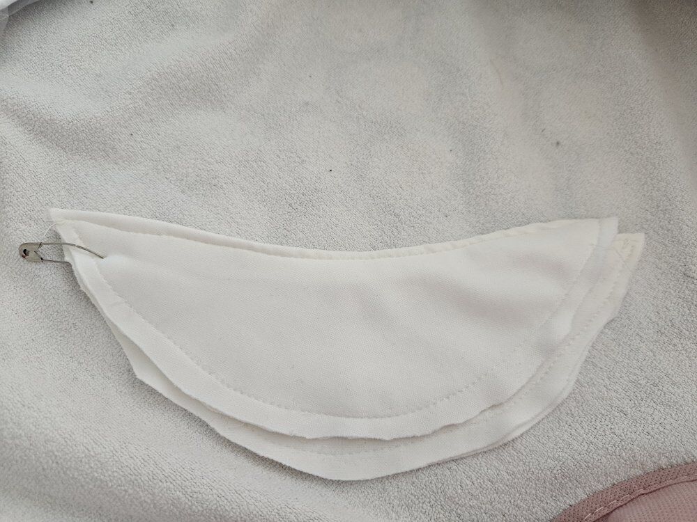 It comes with a veil and shoulder inserts for coverage or if you want to wear at the temple. It has a long train that can be pinned up. It comes with a pink garment bag to protect it.