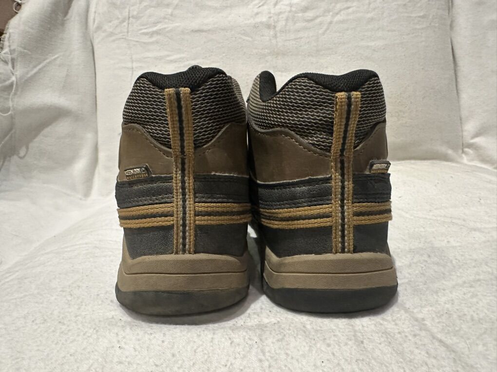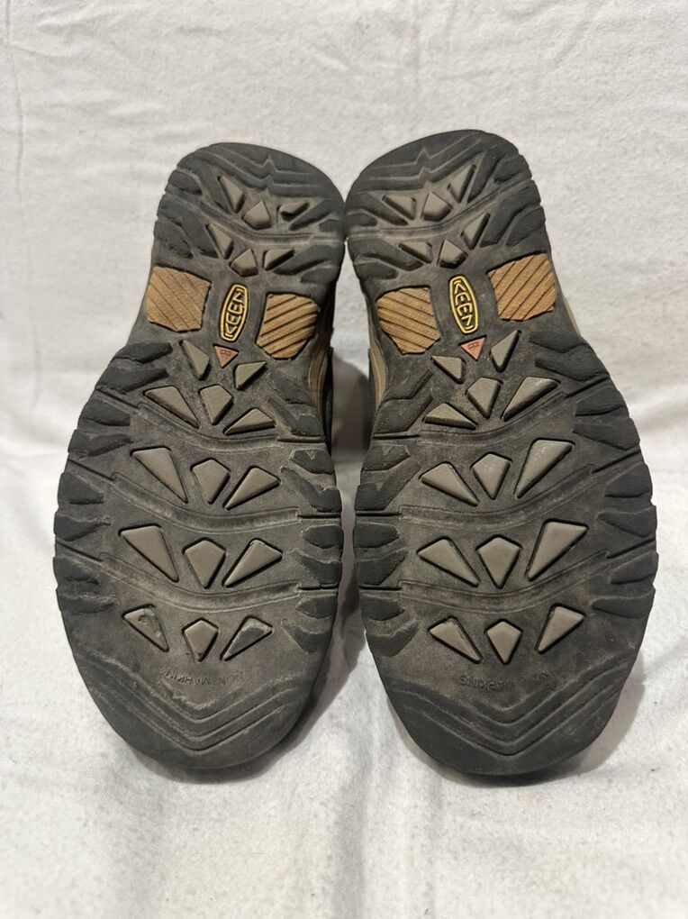 Keen youth size 5 brown/black leather and textile waterproof, hiking shoes with elastic laces and a Velcro strap at the top. These are in good condition, see photos for details. I take cash for Venmo, but cash is preferred. Text is best. 801-201-4446. Check out my other ads for additional sizes and styles.