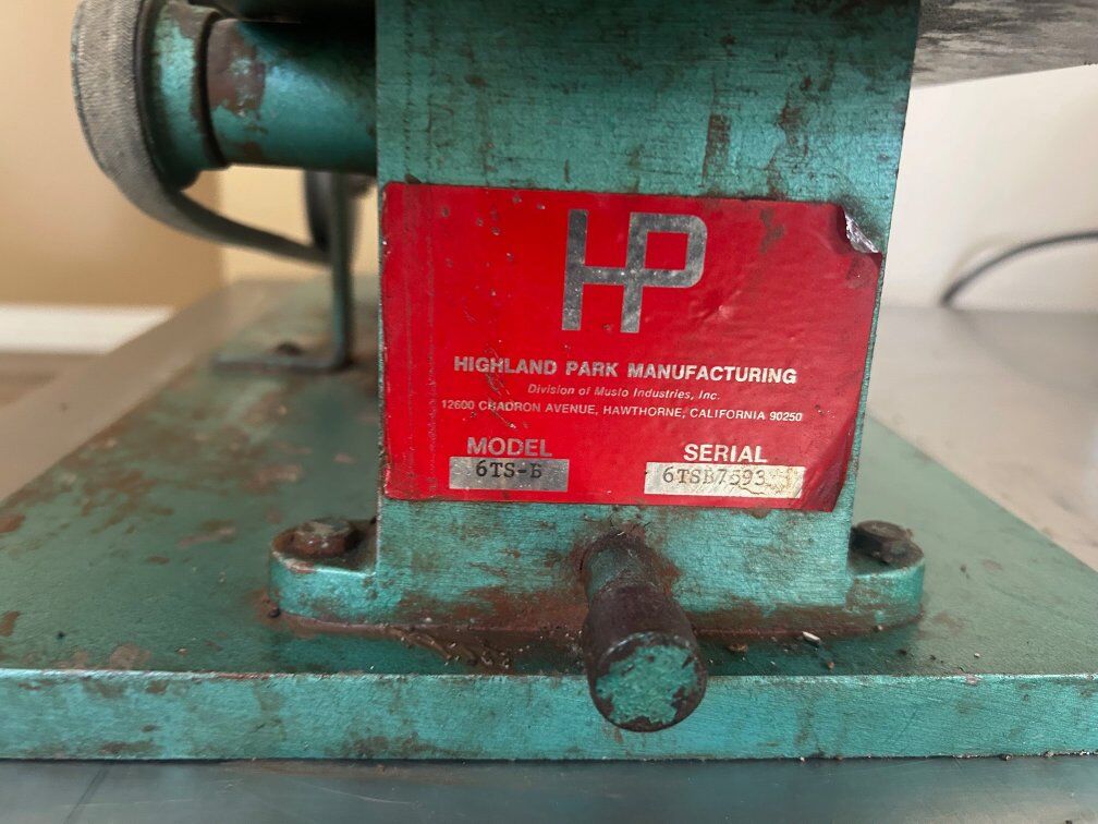 Highland Park Manufacturing, 6-inch trim saw. One of my personal saws, I just don't use it anymore. Original manufacturer, made in California. Always used with mineral oil. newer 6 blade. in-person sales only. Cash Only in person sales. no Venmo, credit cards, checks, or google codes $400.00. Price is firm.