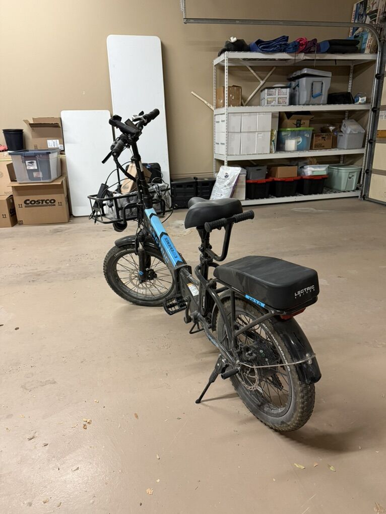 Lectric B-Bike Step Thru Model Installed options: Drink Holder Basket Pack (Comes with other basket, it just isn’t on because the passenger add on is on right now.) Passenger add on Phone Holder Comes with an extra battery. Text and KSL Messages are best.