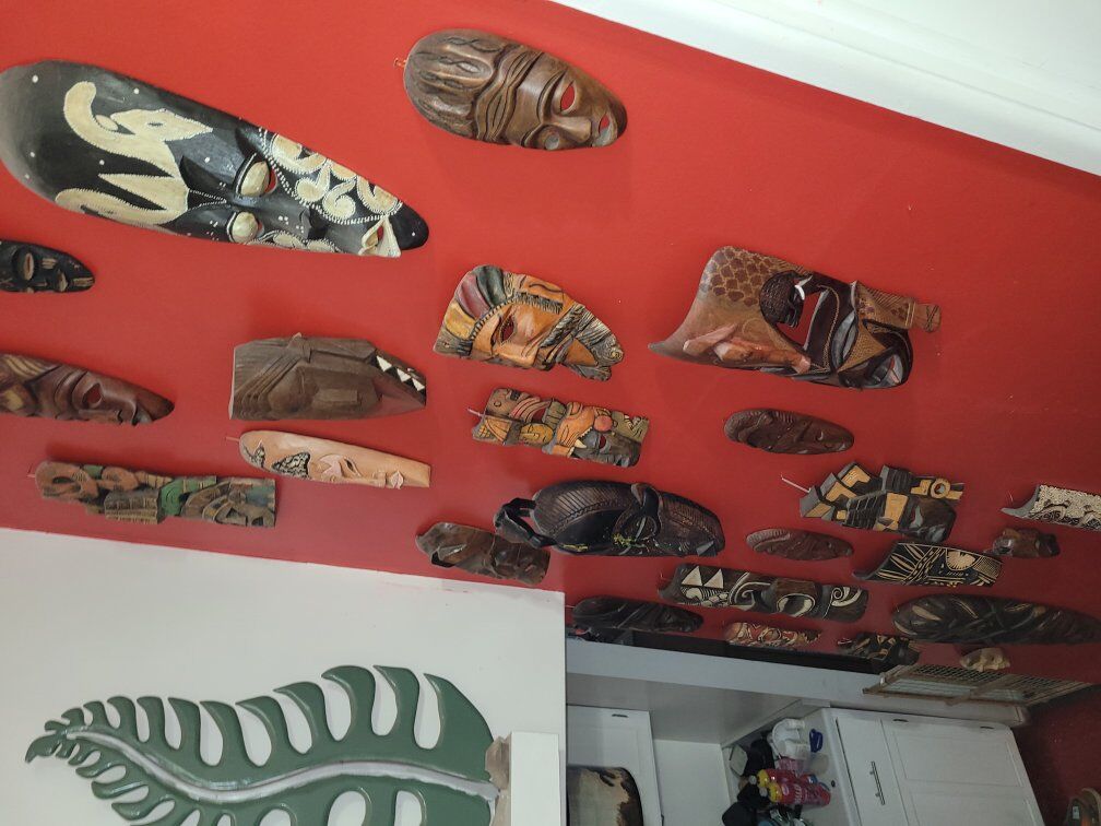 COLLECTIBLES & DECOR Many hand-carved wooden tribal masks Christmas trees & lights Halloween decorations DVDs, Blu-rays, video games Books