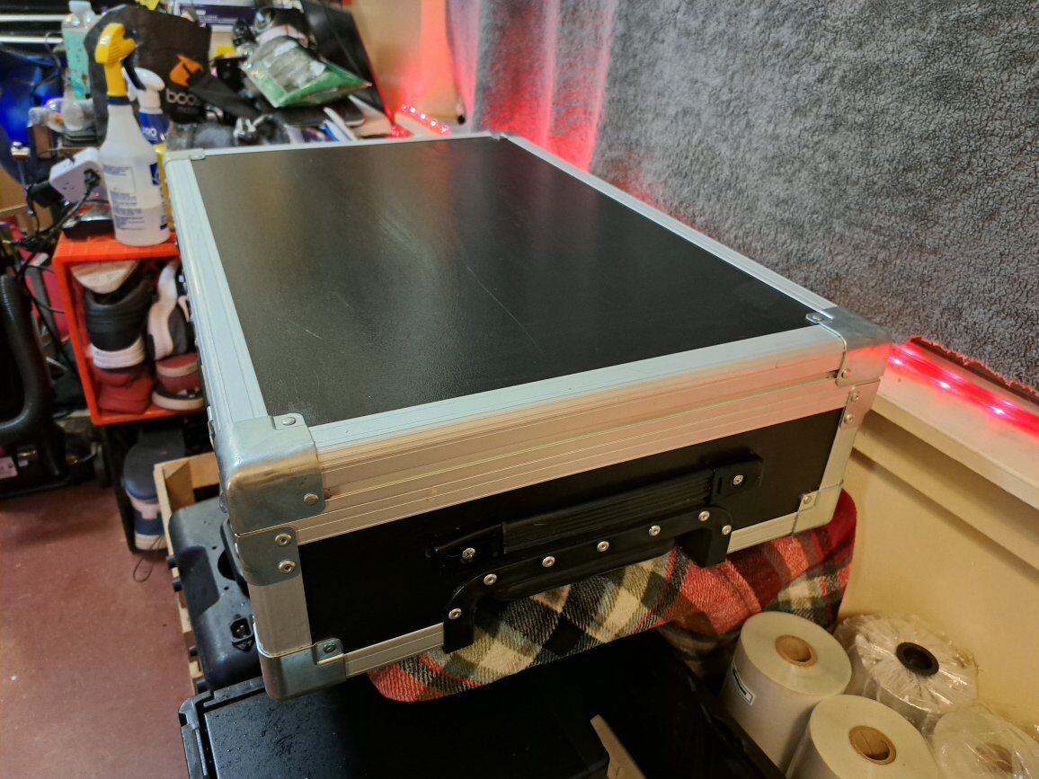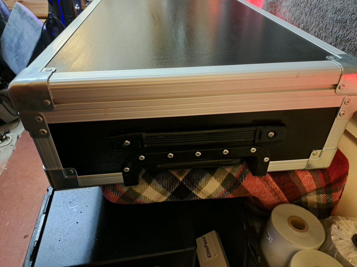 GooglePayProfessional penn fabrication built hard flight case in great condition. Built tough with aluminum trim, steel corners, recessed latches, and carry handle. Perfect for DJ equipment, audio mixers, lighting gear, camera equipment, or tools. Clean, solid, and ready to protect your gear. No cracks or structural damage. Latches and handle work great. I also have two smaller ones asking $60 obo
