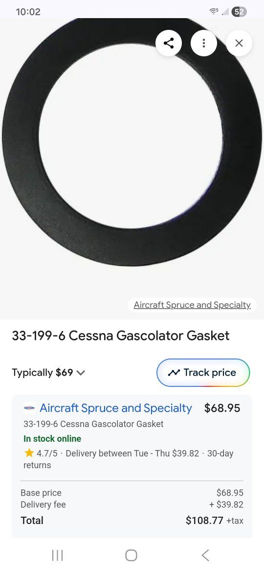 33-199-6 Cessna Gascolator Gasket have 2 40.00 cash
