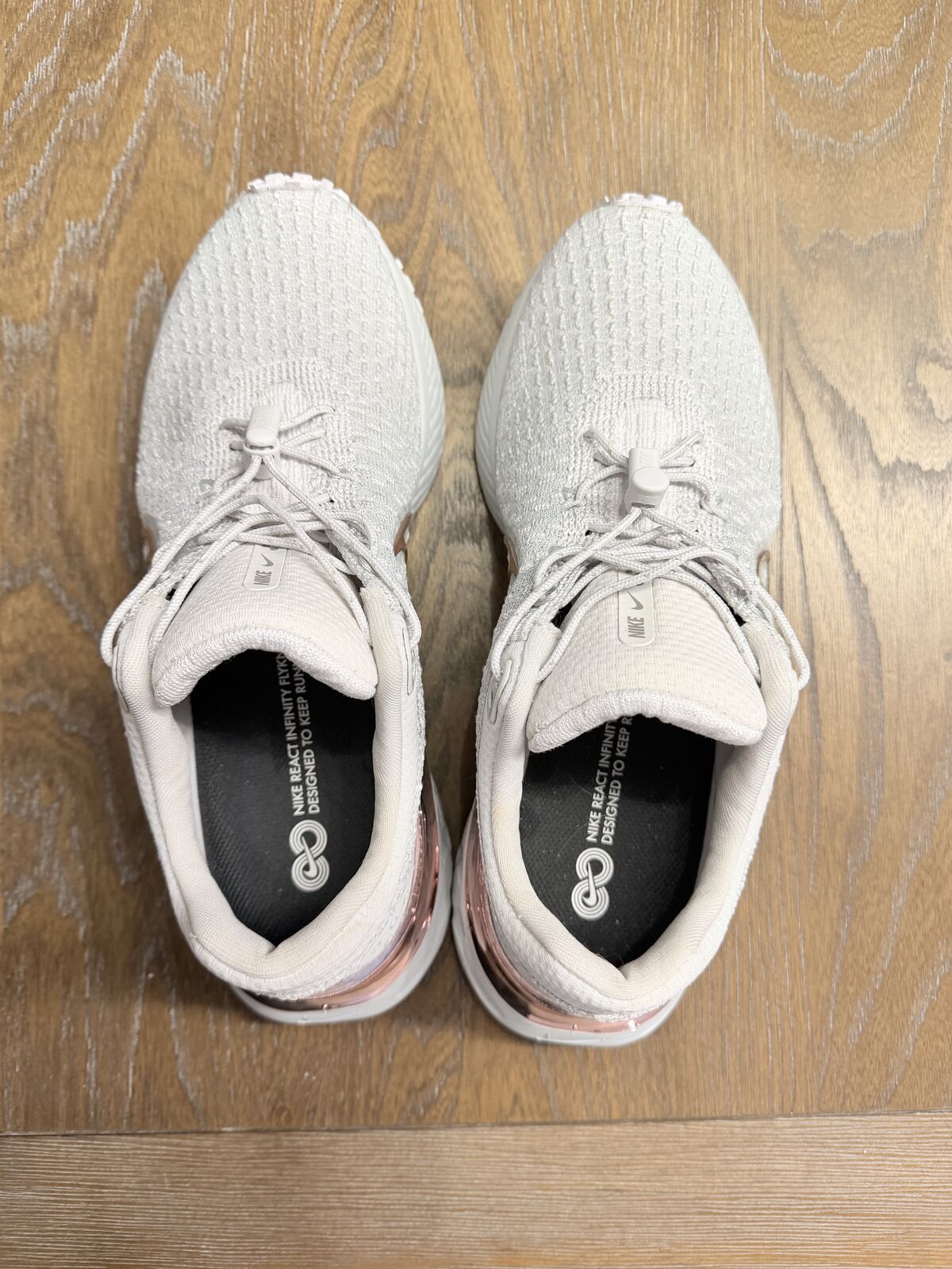 VenmoBRAND NEW NEVER WORN - Nike React Infinity Run Flyknit 3 women's size 8. Light Grey/Rose Gold