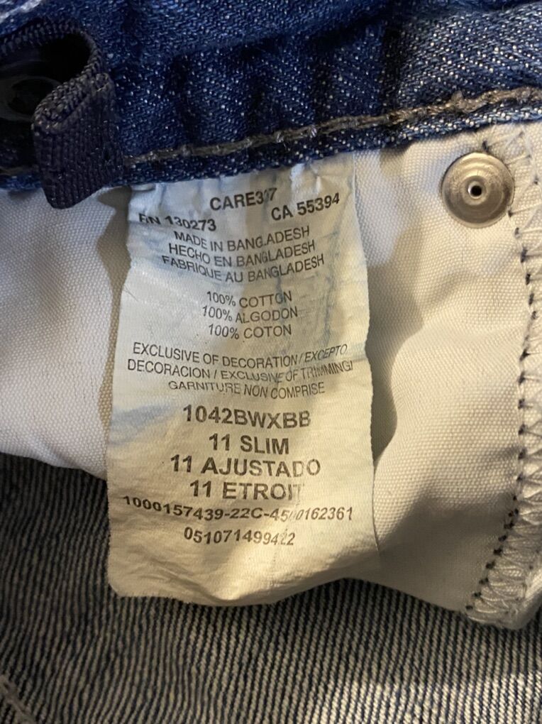 ZelleThe Boys Wrangler 20X No 42 Vintage Bootcut Jean in size 11 Slim is a classic and durable pair of denim pants for young boys. Made from 100% cotton denim, these jeans feature a solid blue color and a regular fit. With a zip closure and machine washable fabric, they are perfect for casual occasions and can be worn year-round. The bootcut style adds a trendy touch, while the Wrangler brand ensures quality and reliability. Ideal for everyday wear, these jeans are a versatile addition to any boy's wardrobe.