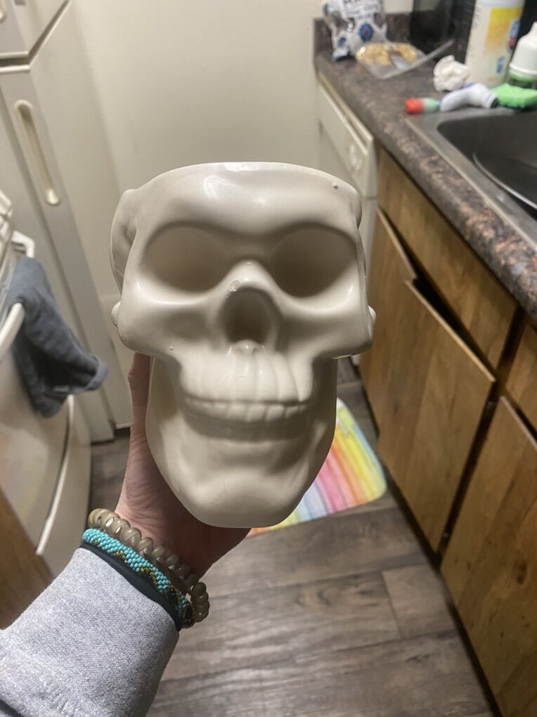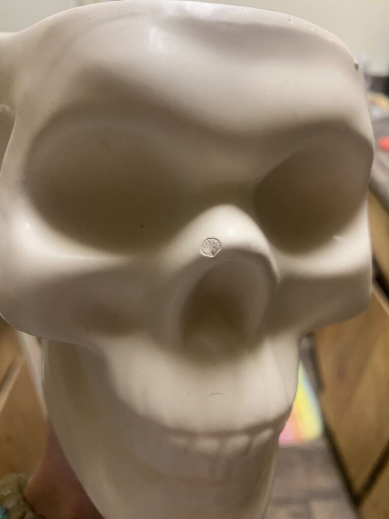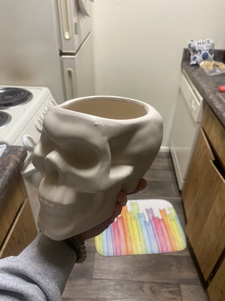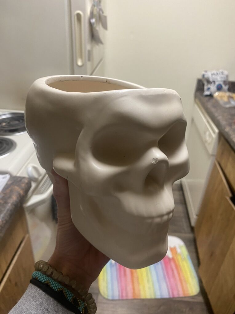 ZelleWhite skull pot, has small knick on the nose but otherwise in great condition