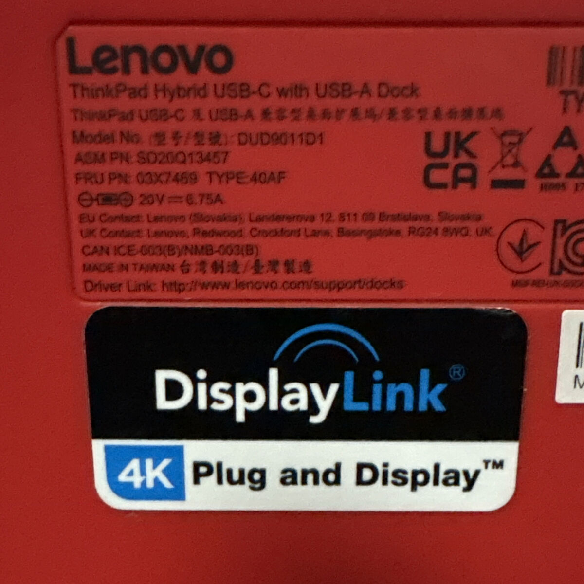• ThinkPad Hybrid USB-C with USB-A Dock ThinkPad USB-C & USB-A Model No:DUD9011D1