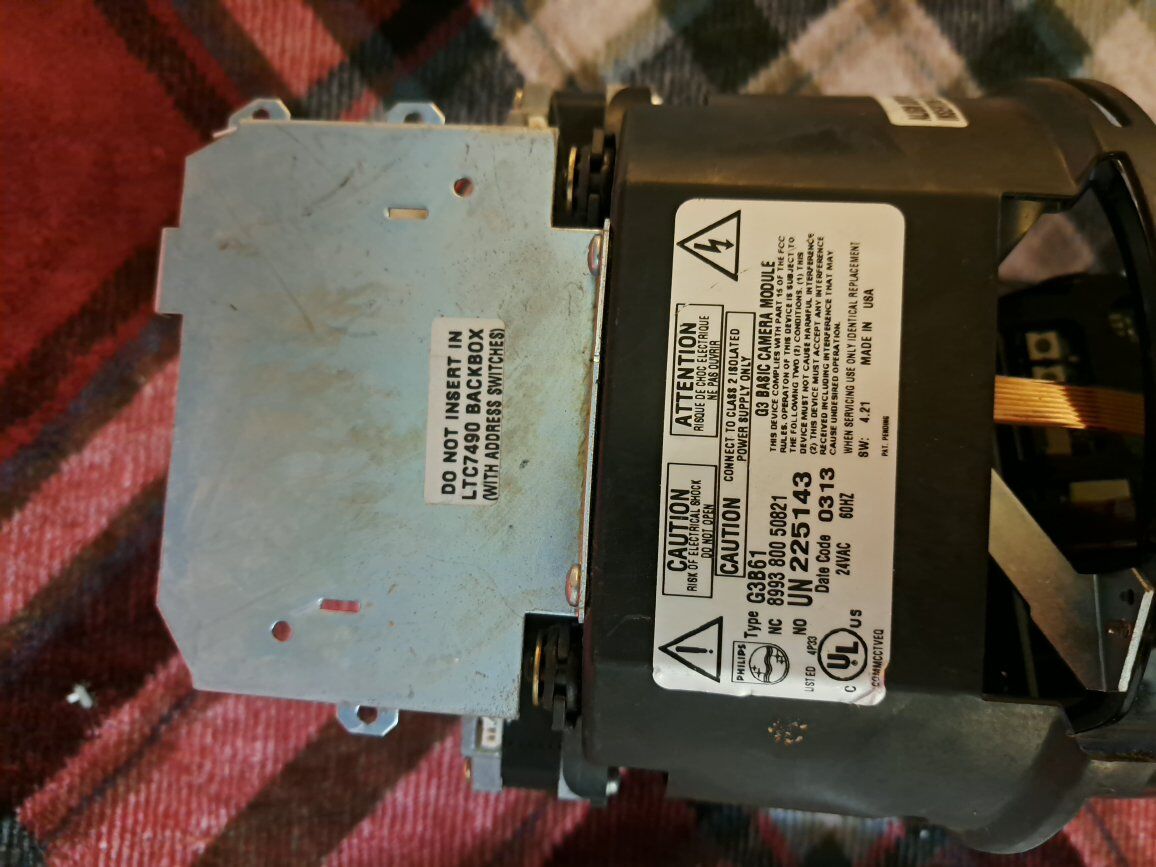 This monochrome (black-and-white) CCD camera module was part of the Philips/Bosch security and surveillance product line, designed to be installed into a back box or dome housing, such as the LTC7490 backbox. The label indicates it operates on 24VAC, 60HZ power and is a Class 2 device. asking $20 as is obo open to trades as well