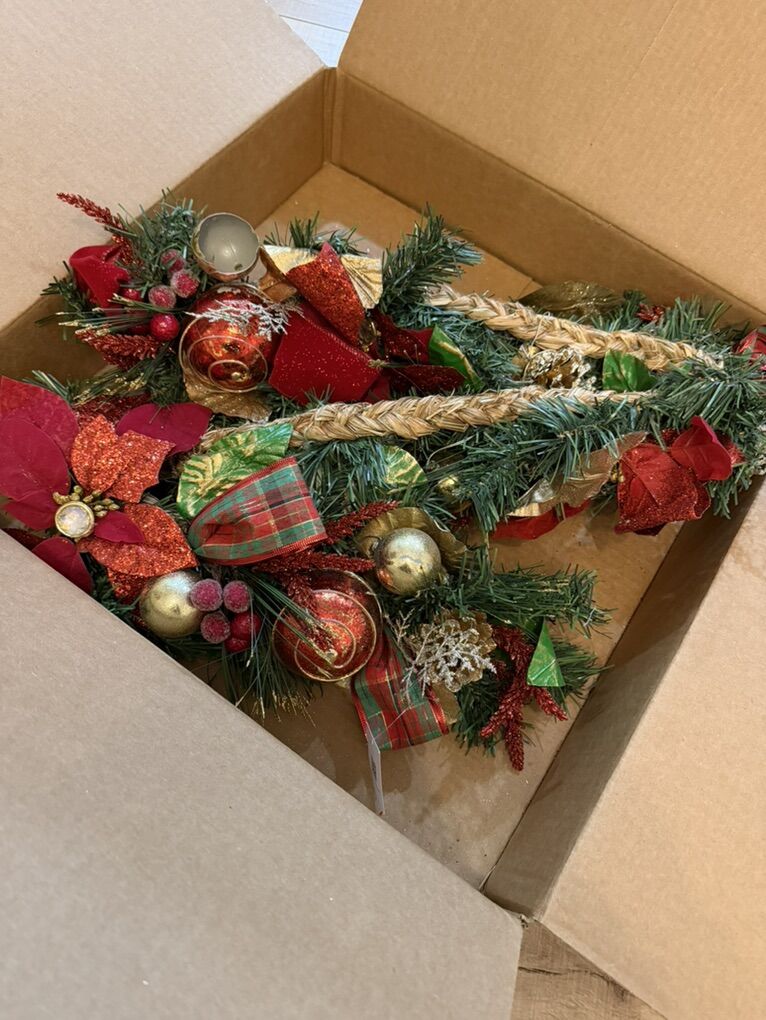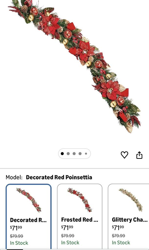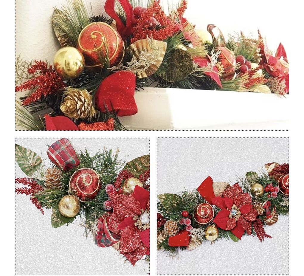 5 ft Christmas Garland for Mantle Unlit Garland for Stairs Railing, Banister, Staircase, Fireplace, for Table No Light, Garland Decor Frosted Red Poinsettia Holiday Tree (Decorated Red Poinsettia)