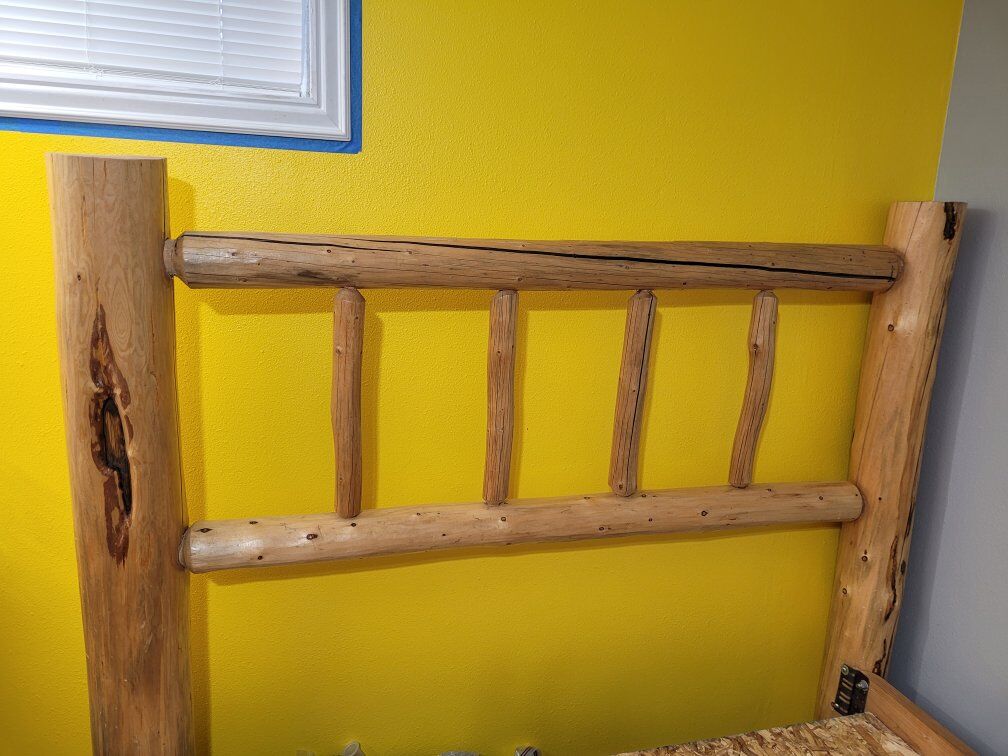 Queen size Log Bed. Still in great shape. Just don't need anymore. It is taken apart and ready to haul. You pick up. Can help with loading. Does NOT have a mattress.