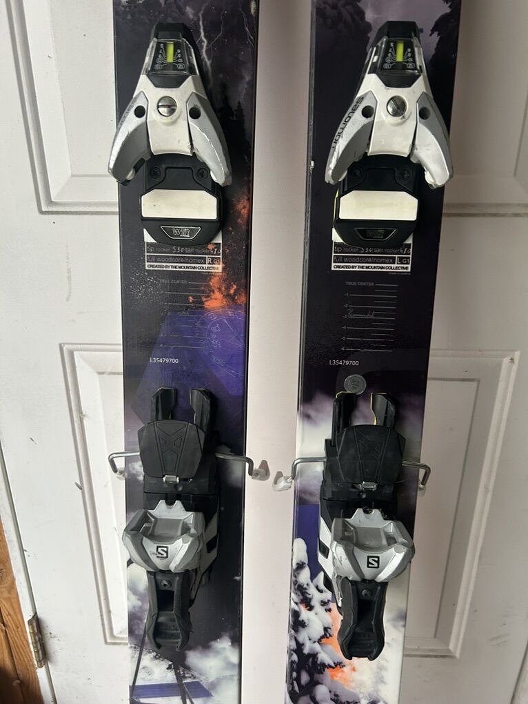 VenmoWith STH 13 demo bindings. Skis are somewhat vintage at this point but have plenty of life left; they’ve not been skied much. A couple core shots are visible on the bases. One small core shot has not been fixed but is not a big deal. I’m unloading because I don’t ski the resort enough these days to justify having a big ski like this in the quiver.