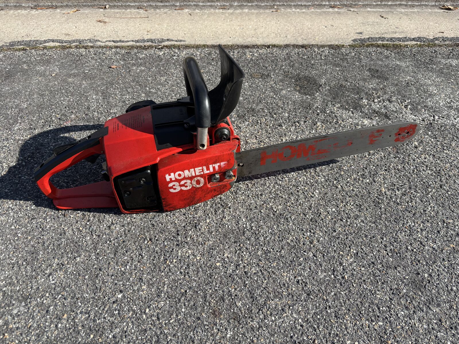 VenmoUsed Homelite 330 chainsaw - has been in storage. Starts and runs - but may need some maintenance.