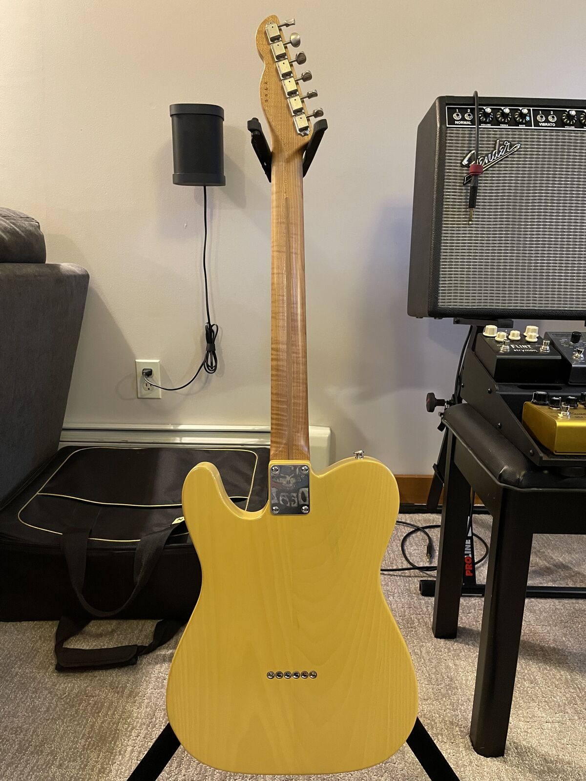 VenmoExcellent condition (some minor pickguard wear). 1-piece roasted maple neck (9.5 radius), roasted pine body, ultra-thin nitro flash coat finish, Seymour Duncan noiseless pickups. All original except for the bridge saddles. I replaced them with the Groove Master Saddles from Music City Bridge in Nashville. Original saddles are included. Please message me if you have questions. No trades. Thanks.