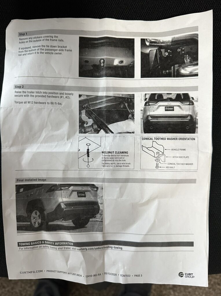 VenmoHere’s a brand new, never used, Class III receiver hitch, model number is Curt 13416. Bought this for a 2023 Toyota RAV4 but never installed it. Comes with attaching bolts and instructions. The Curt website states it will fit 2019-2024 Toyota RAV4 models. https://www.curtmfg.com/part/13416