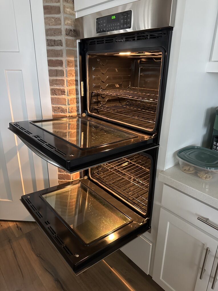 GE double oven stainless steel Bake broil self clean etc Everything is perfect with these ovens and they are amazing we are just changing to a matte white instead of stainless