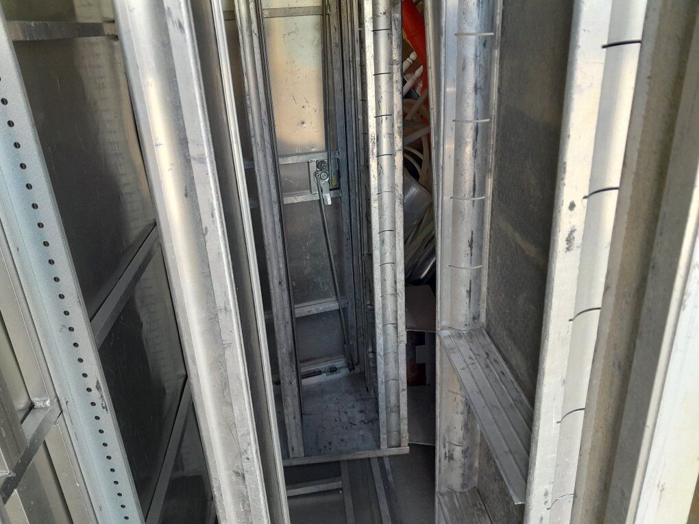 All aluminum has shelving lighting all the separators 3 lockable doors and all mounting hardware will fit most full and medium size trucks only used 2 years