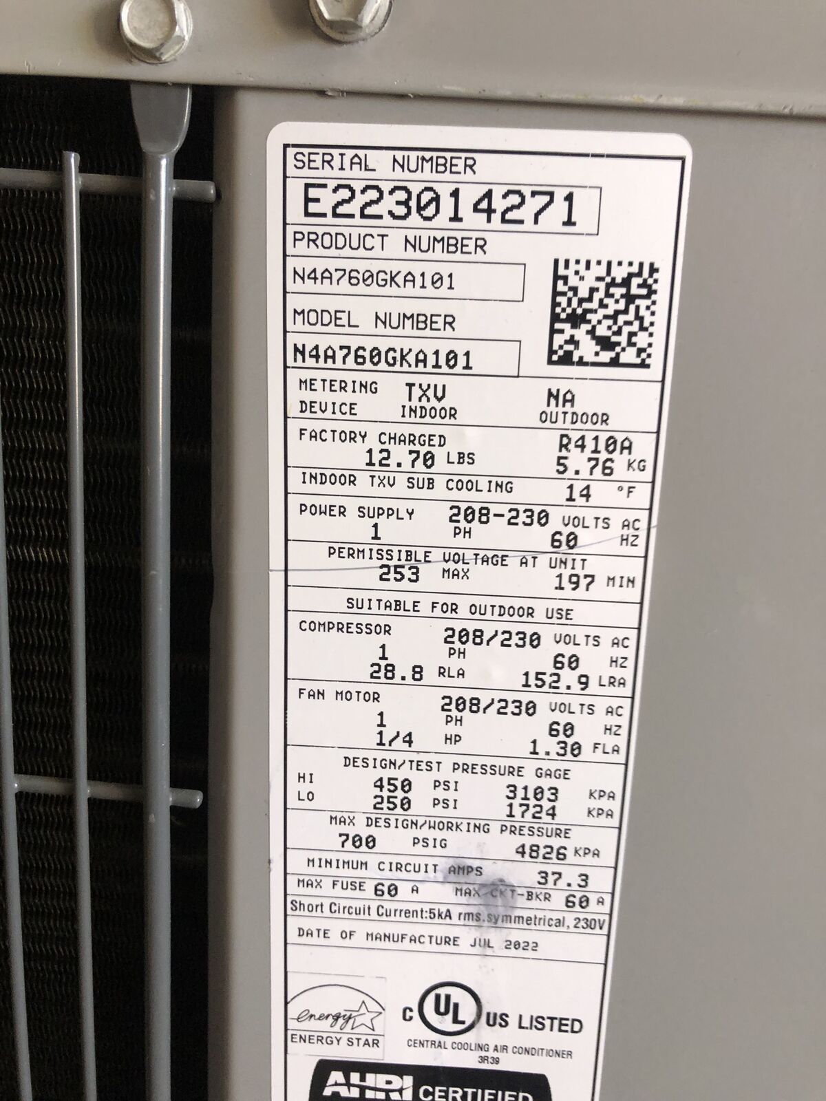 Venmo5 Ton 17-SEER A/C Condensing Unit ICP N4A760GKA101 High Efficency , 2 Stage Scroll Compressor. 2 Speed R-410A