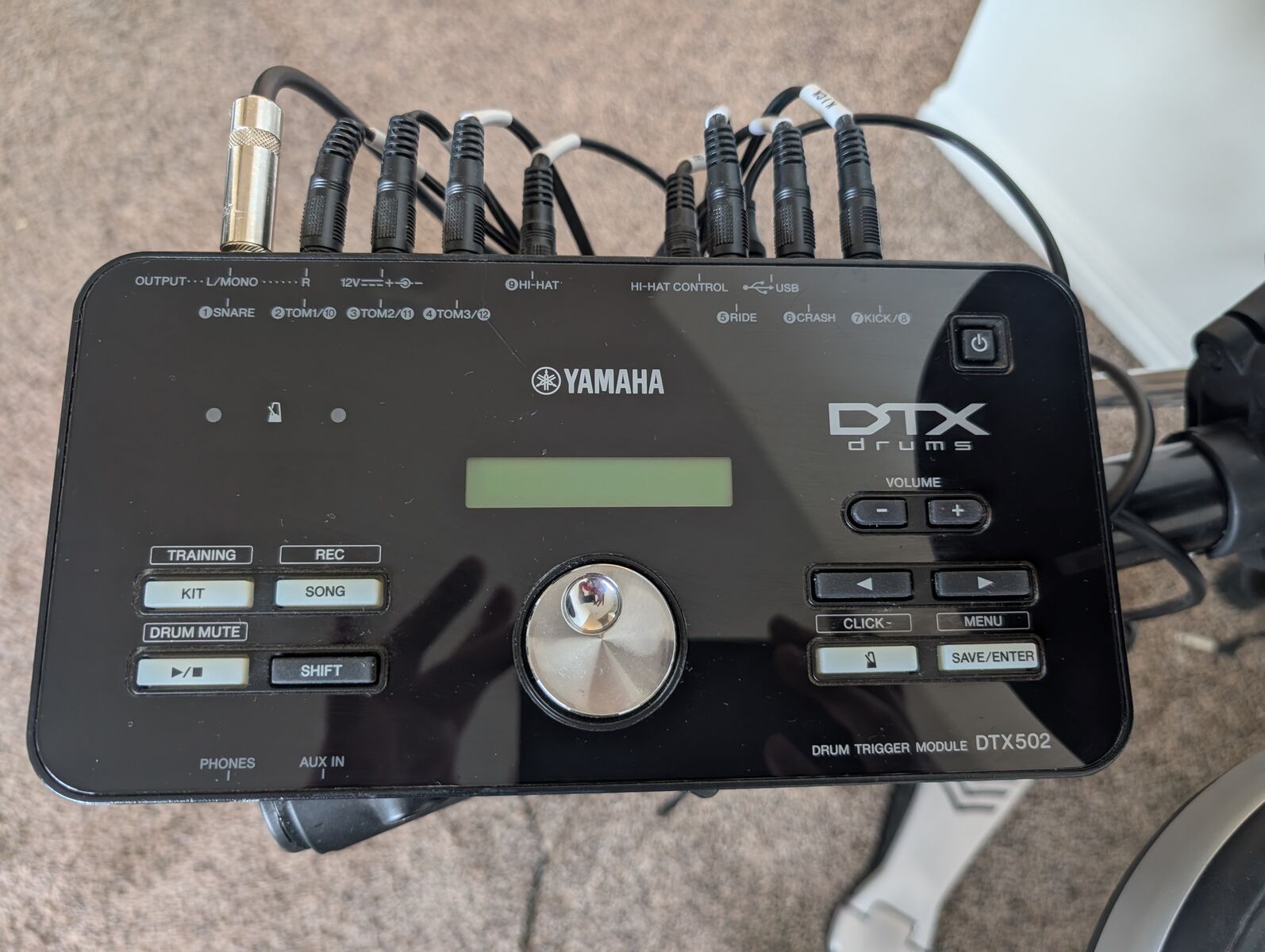 I am selling my Yamaha DTX502 electronic drum kit. I bought this brand new from Guitar Center for $1,000 and it has been a fantastic kit over the years. I am a light-hitting drummer, so the pads and hardware have seen very little wear and tear and are in great shape.