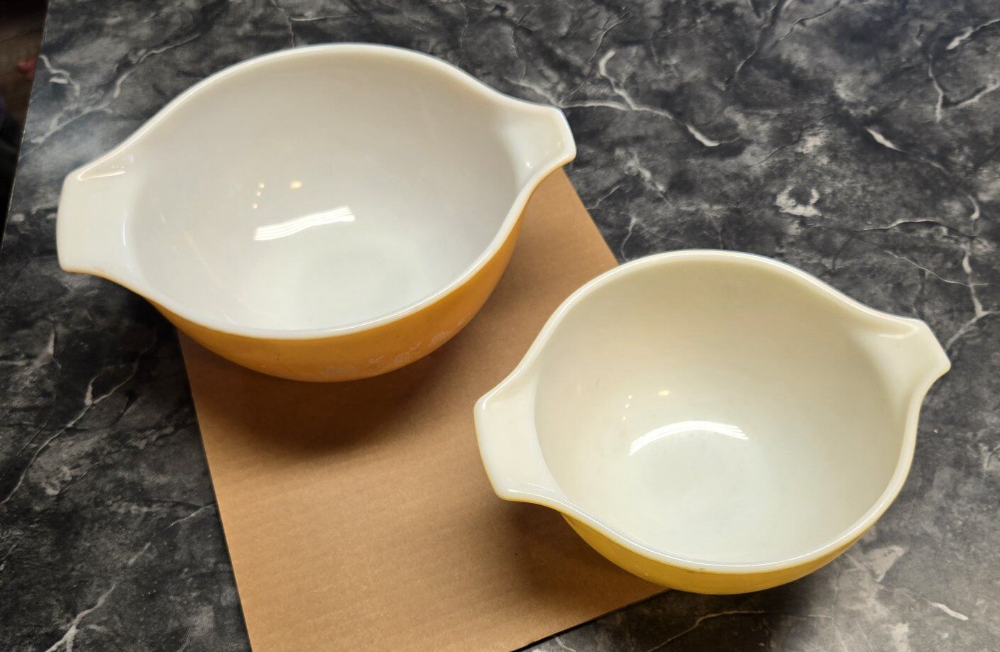 These are 2 Vintage Pyrex mixing bowls. Butterfly Gold. #441 and #442. Both for $20. Picked up in Taylorsville. Thank you.