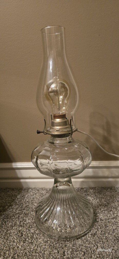 Venmonice old hurricane lamp that has been converted to electric. stands about 18 inches. glass is in good condition. pickup only. Cash or venmo only