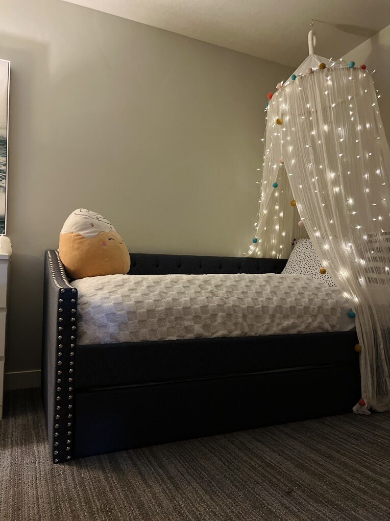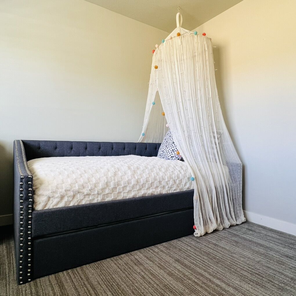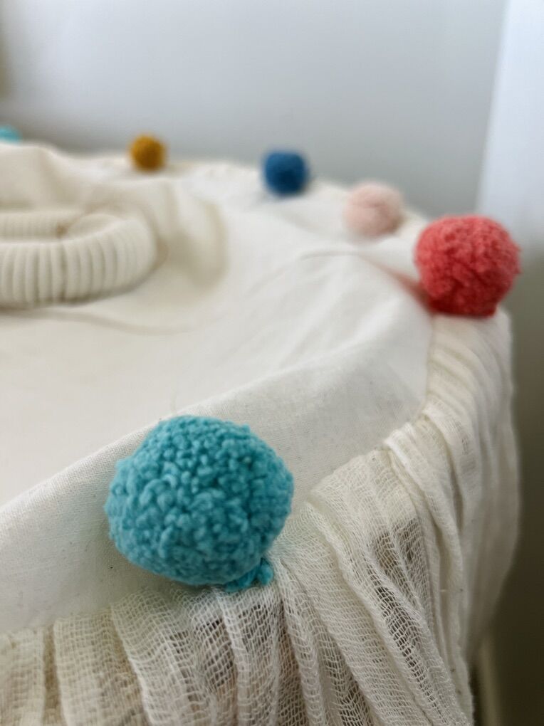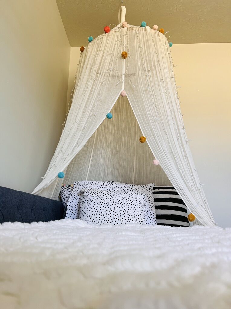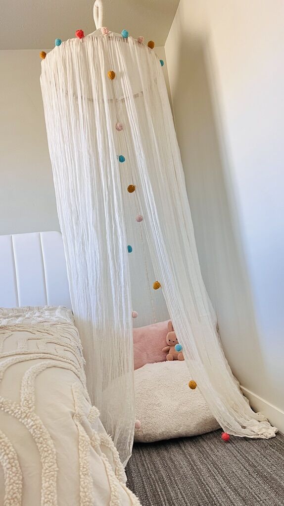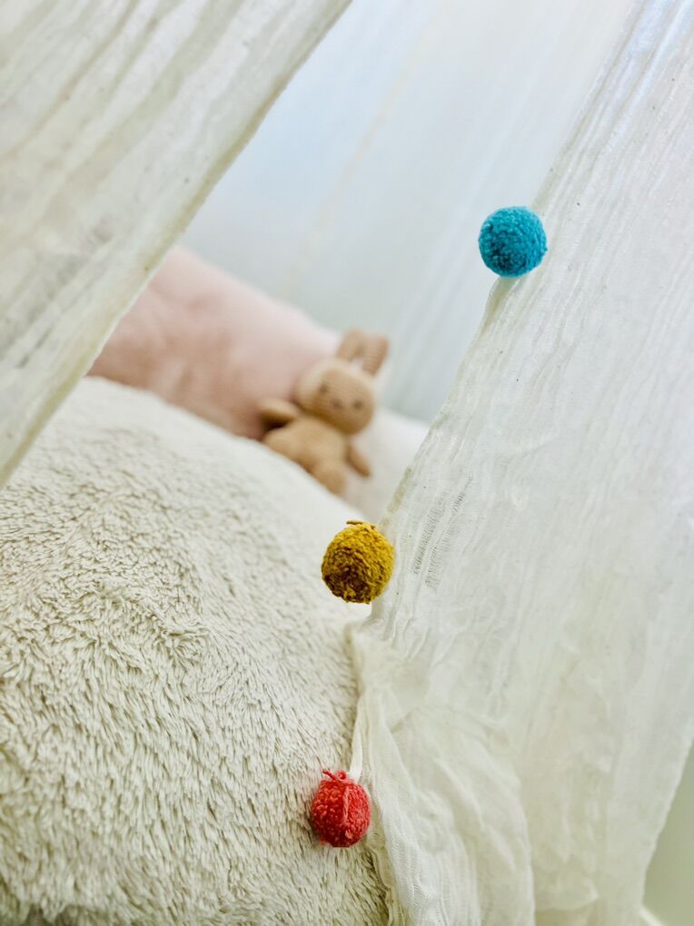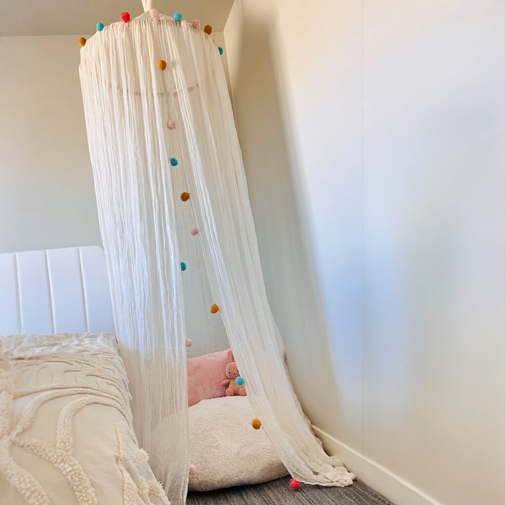 VenmoAvailable Canopy With Pom Poms and Cream Cotton Gauze