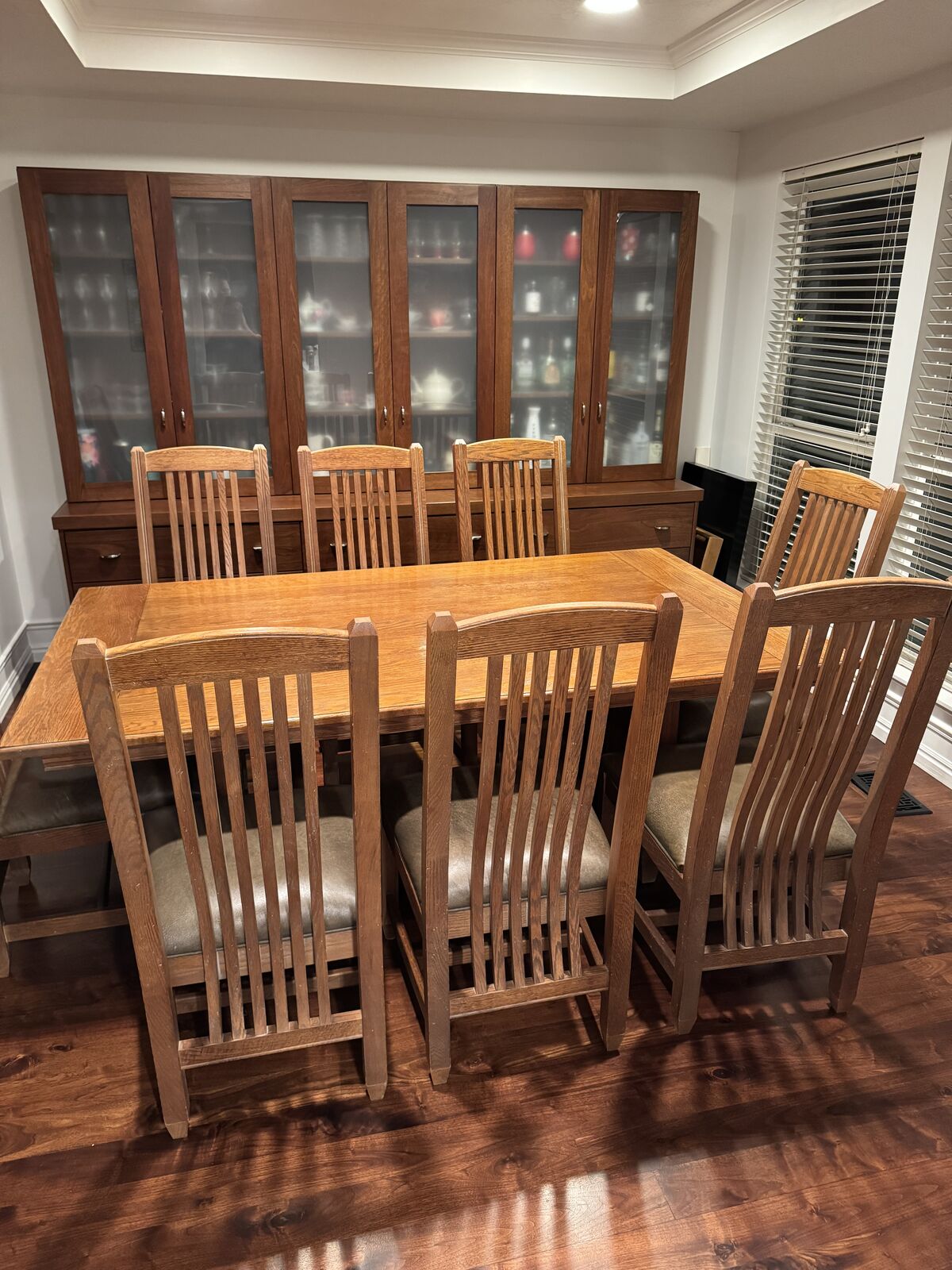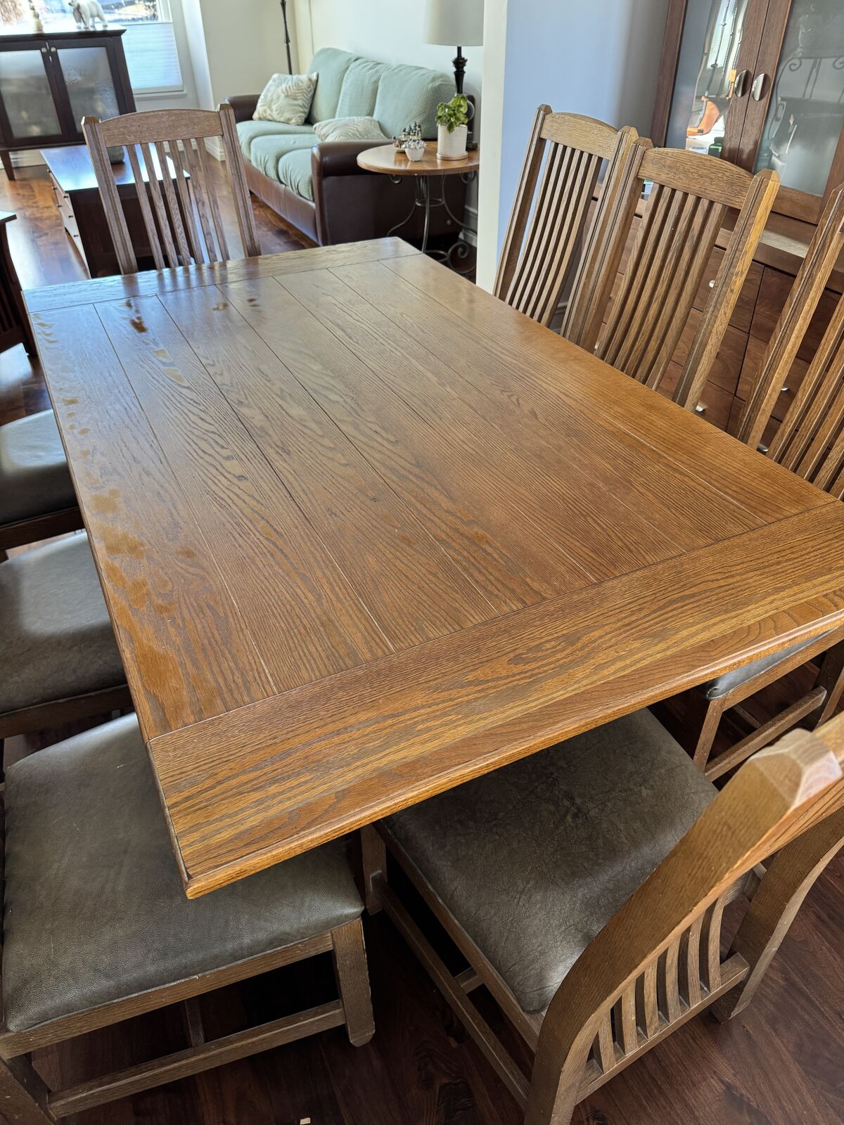 VenmoPrice drop. Have loved this table and chairs but it's time to downsize. Still in really good shape with normal wear. Includes table, 2 leaves, and 8 chairs. We have seated up to 12 people at this table with folding chairs. 9ft x44 with both leaves. 76x44 without. Table Height 30 inches Chairs 44 high Paid about $7000 new. Price Drop, again! Now asking only $1000 or best offer for the set. I live on around 2800 S and 2000 E in SLC. I take cash or Venmo. Pick up only, and bring a large truck or trailer and a few friends to help you move it. No scammers please.