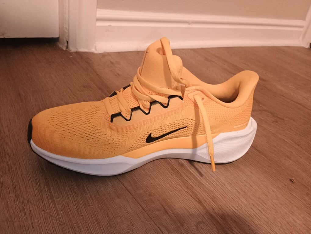 VenmoThe product is a pair of women's Nike Air Zoom Pegasus 41 running shoes in a size 9. The shoes feature a stylish design in gold yellow color with a multicolor scheme, making them a bold choice for athletic wear. With the iconic Nike Air Zoom technology, these sneakers provide comfort and impact resistance for running and other physical activities. The model is part of the Nike Air Zoom product line, known for its performance and style in the world of sports footwear. New without box, never worn and authentic.