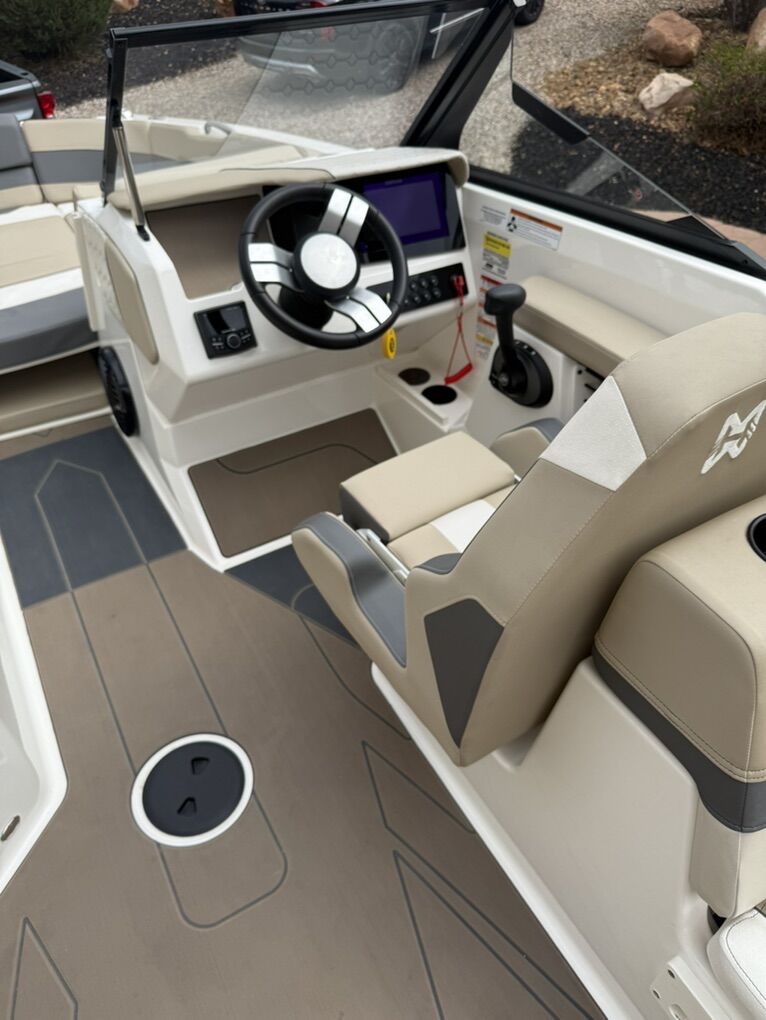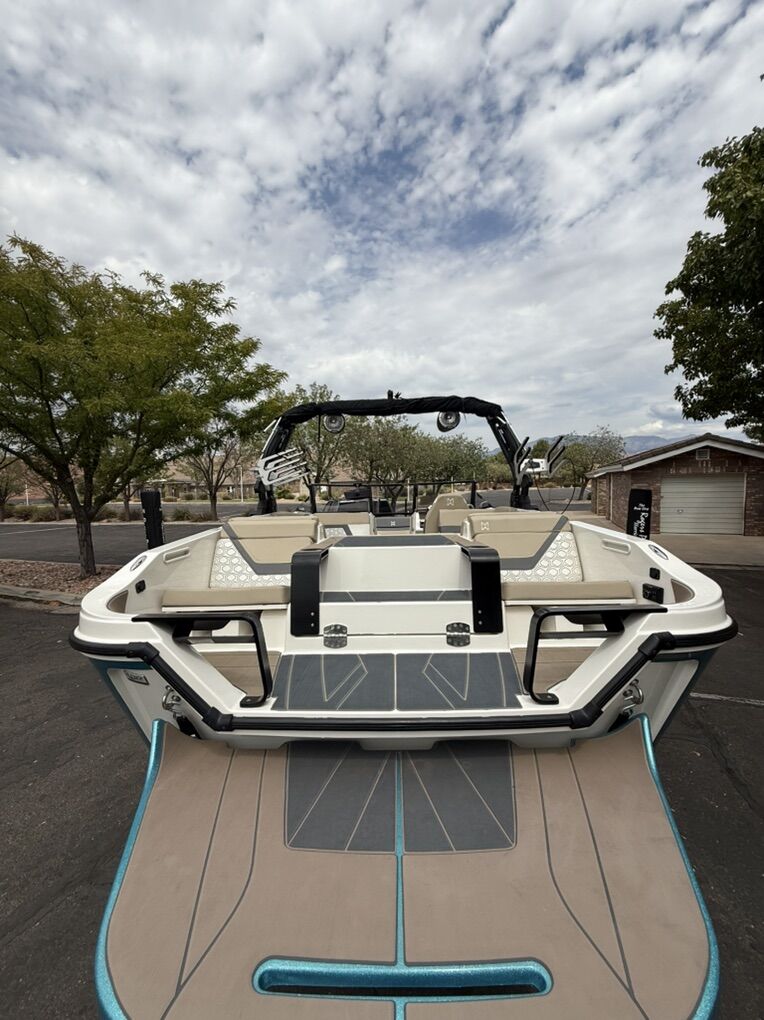 Powered by a 6.2L Indmar Raptor V8, featuring an integrated ballast system, surf tabs/auto surf, and Heyday’s deep-v hull design for a consistent, powerful wave. The layout includes rear-facing surf seats, plush seating throughout, tons of storage, premium marine audio, tower speakers, wake tower with board racks, bimini top, touchscreen display, and SeaDek-style flooring.